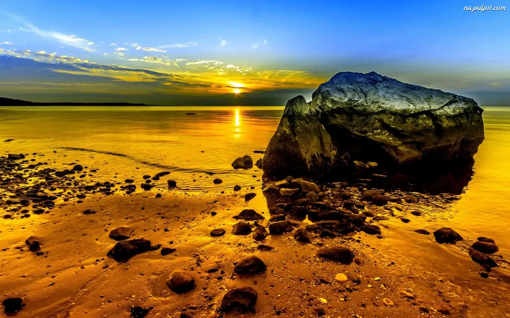 Plaża, Jezioro, Słońca, Zachód, Kamienie Na Pulpit