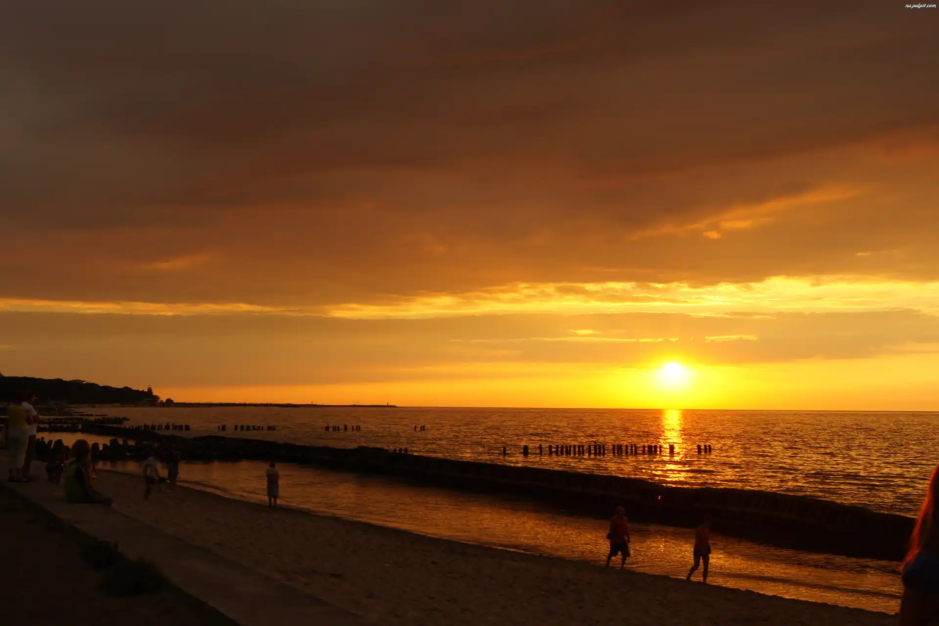 Plaża, Słońca, Zachód, Morze