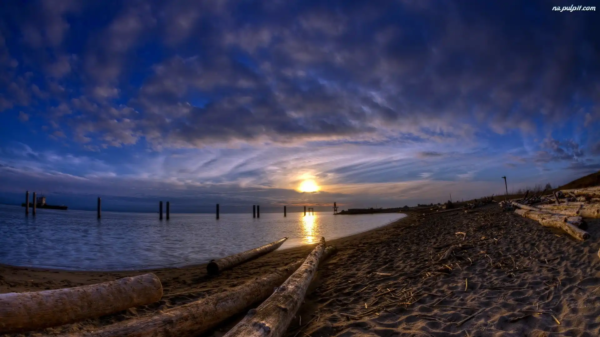 Plaża, Morze, Słońca, Zachód, Filary