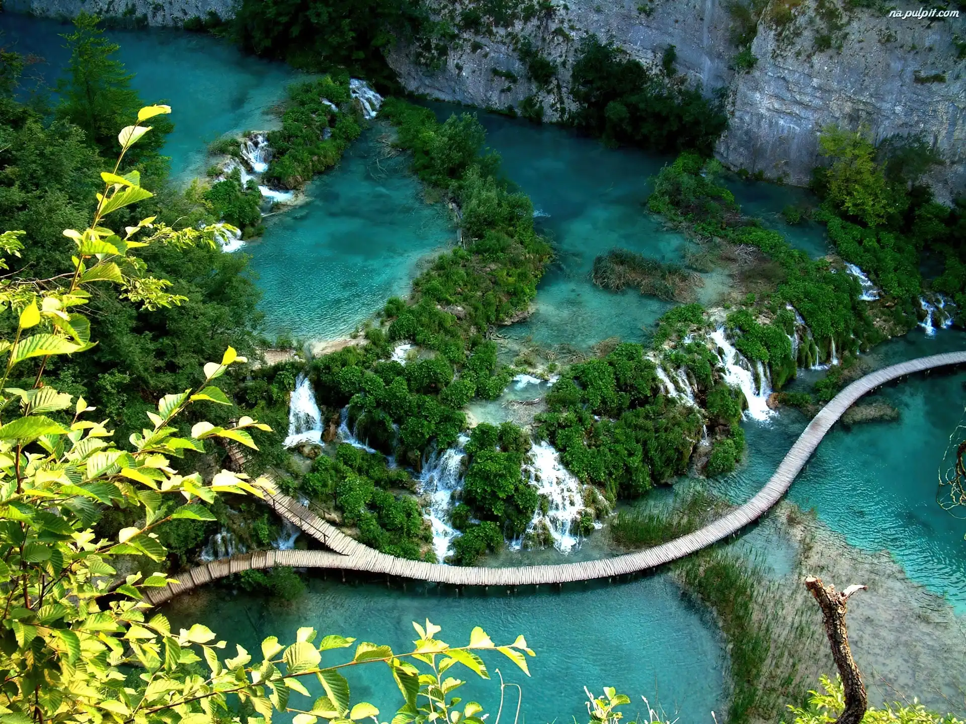 Plitvice, Pomost, Skały, Listki, Park Na Pulpit