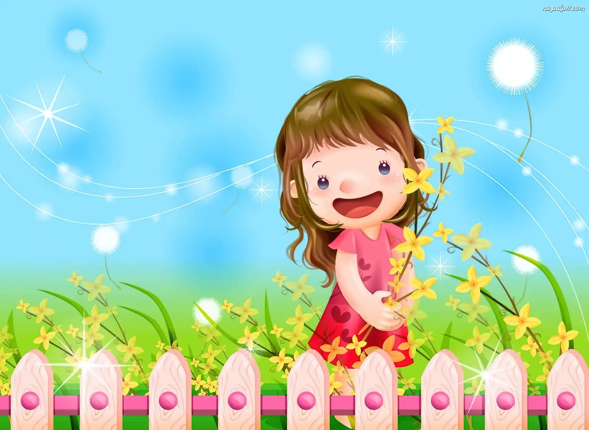 Płot, Radość, Dziecko, Kwiaty
