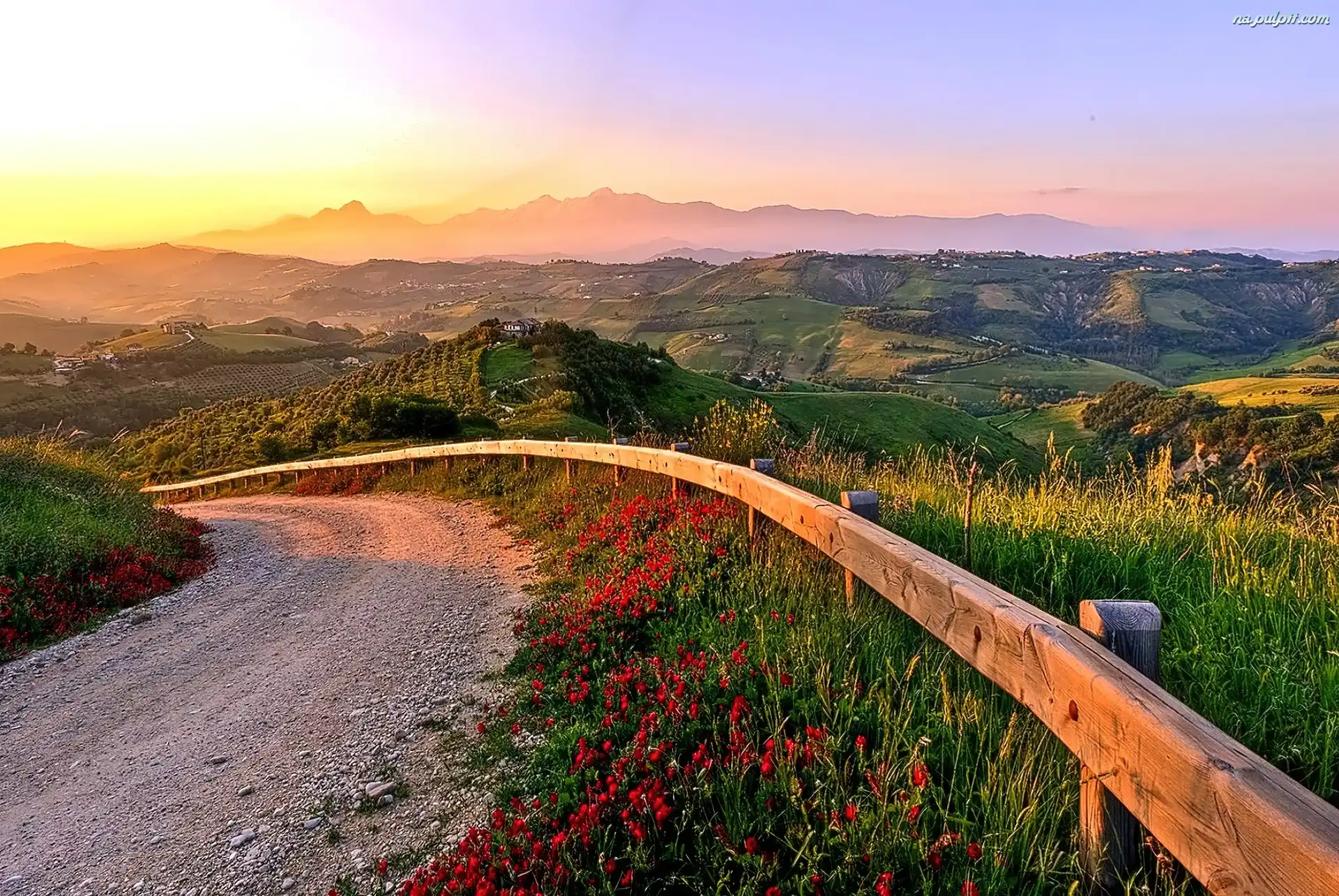 Płot, Droga, Pejzaż, Góry, Drewniany
