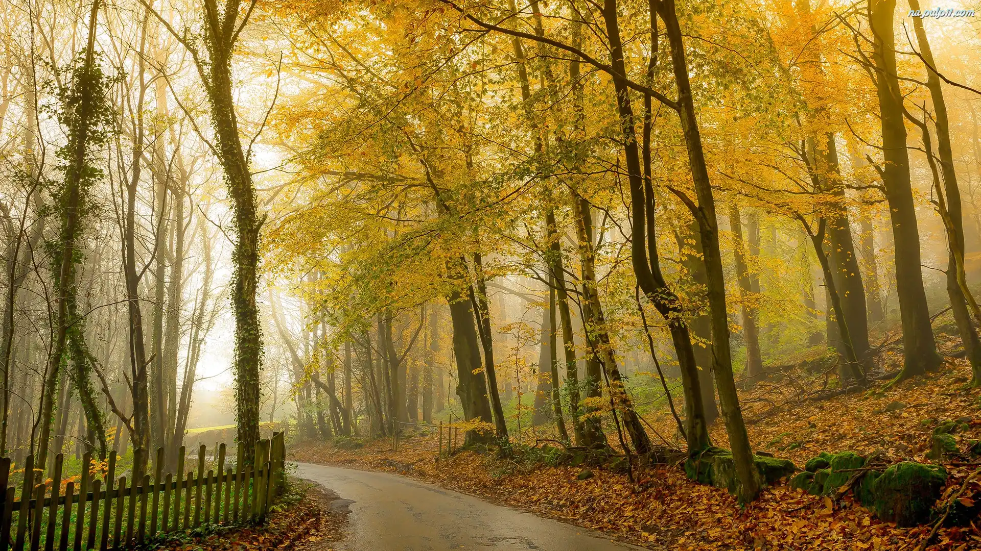 Płot, Droga, Jesień, Drzewa