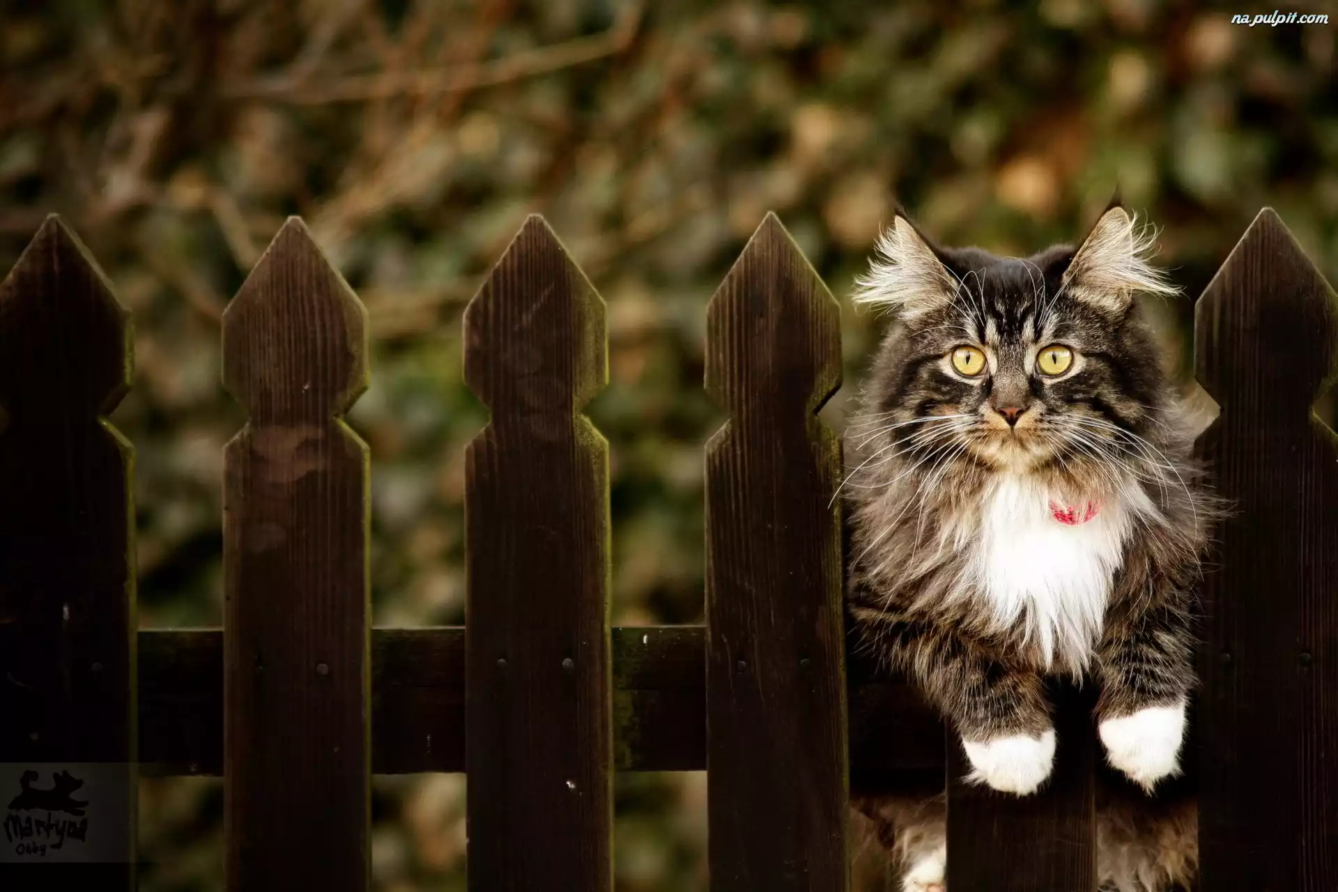 Płot, Czerwona, Kot, Obroża Na Pulpit