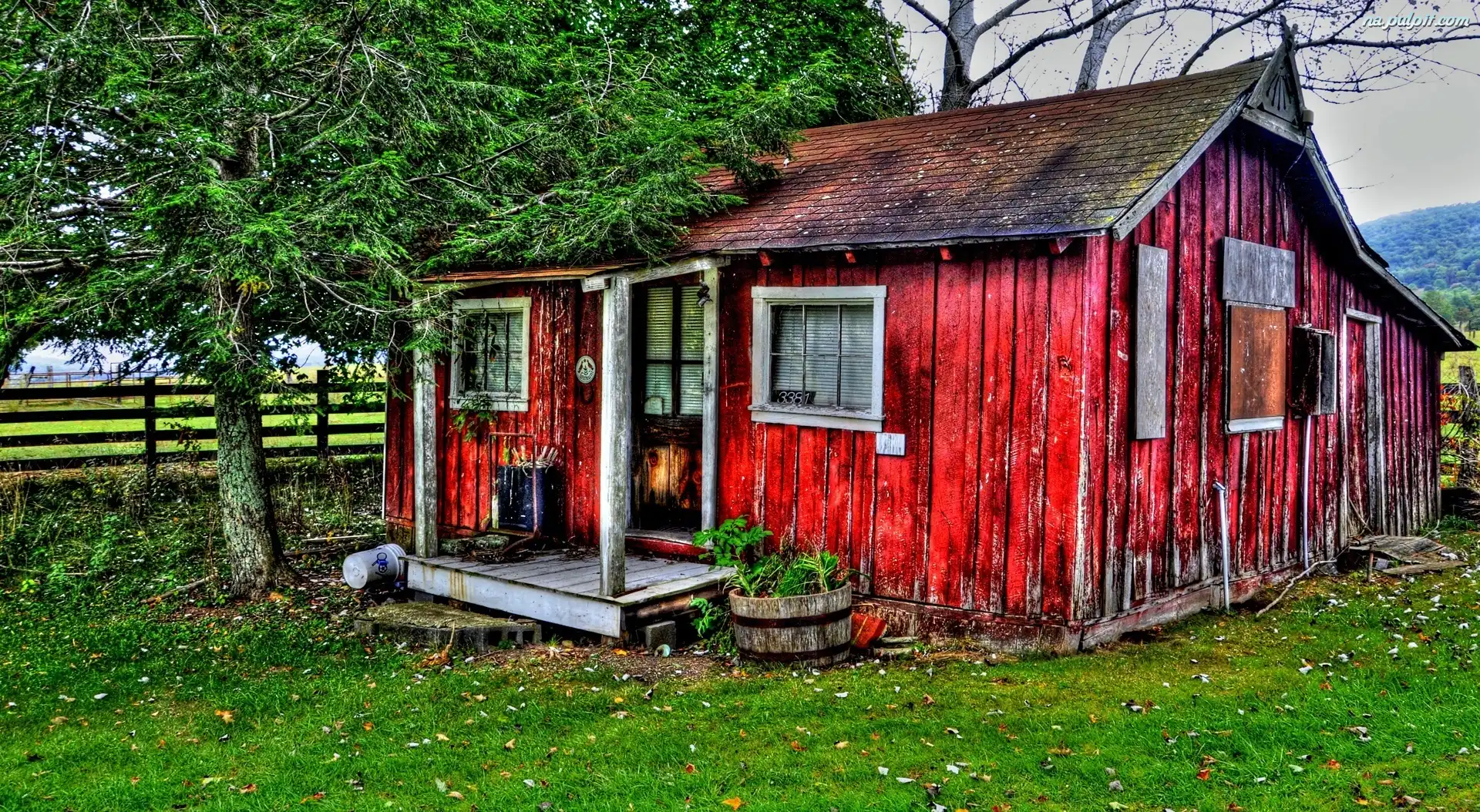 Płot, Domek, Mały, Drzewo Na Pulpit