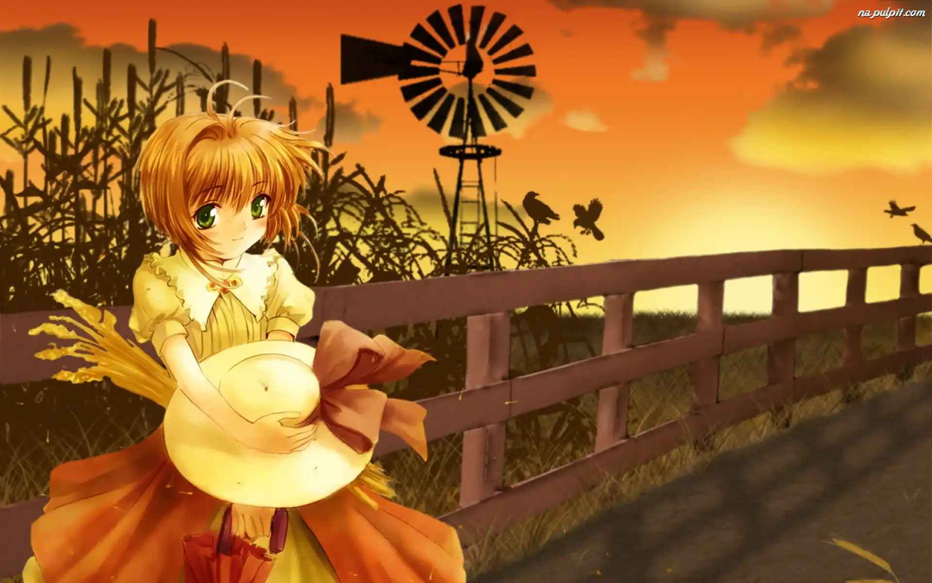 płot, dziewczyna, wiatrak, Cardcaptor Sakura, kapelusz