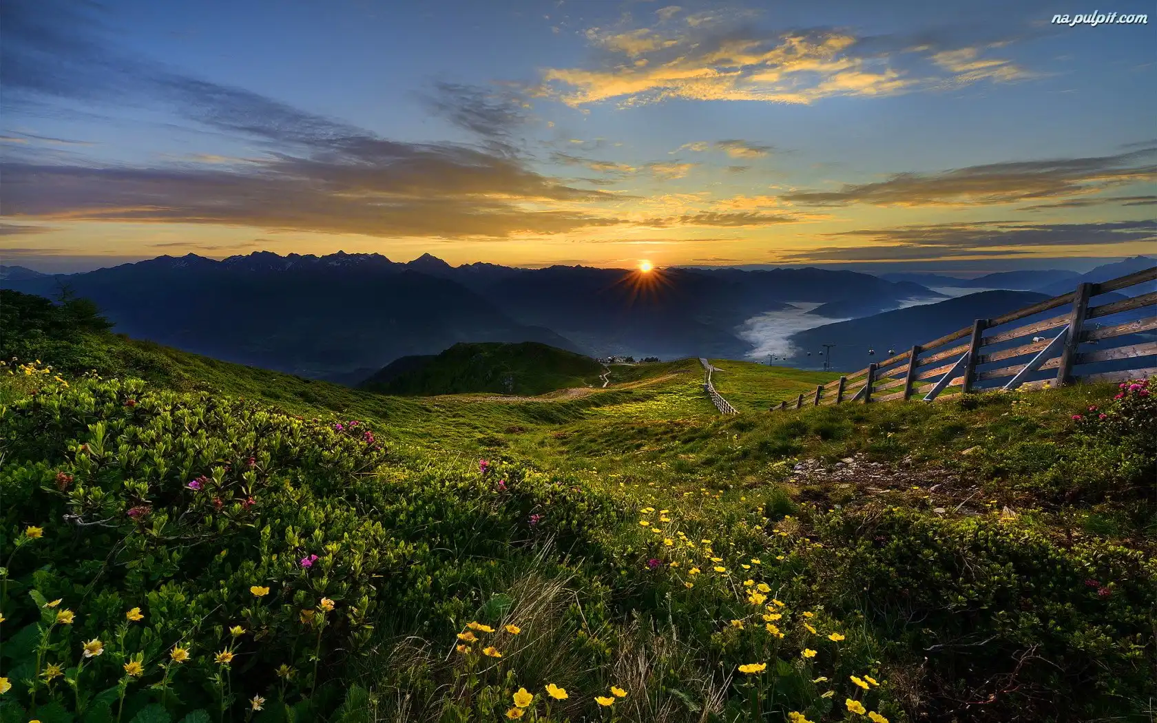 Płot, Góry, Słońca, Zachód, Łąka Na Pulpit