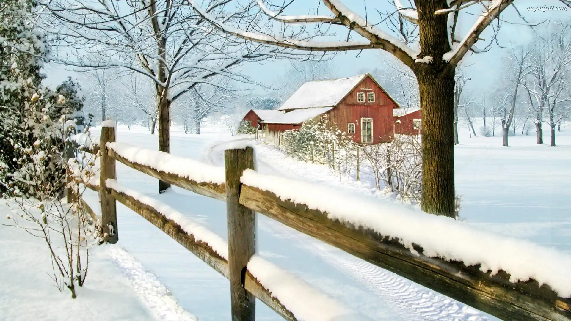 Płot, Dom, Drzewa, Śnieg, Zima, Droga Na Pulpit