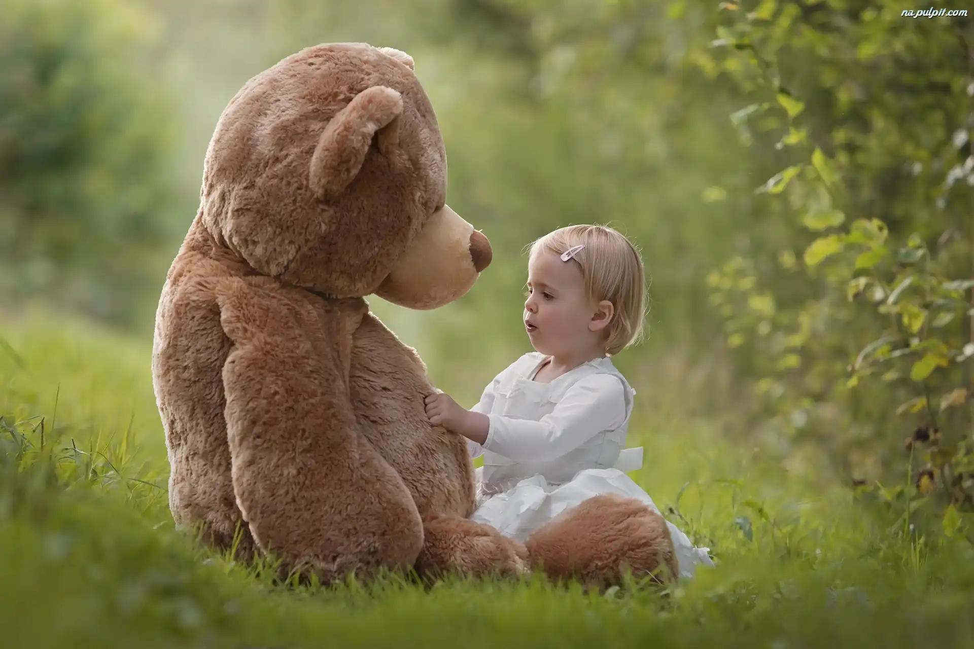 Drzewo, Pluszowy, Trawa, Dziecko, MiÅ›, Zabawka, Dziewczynka
