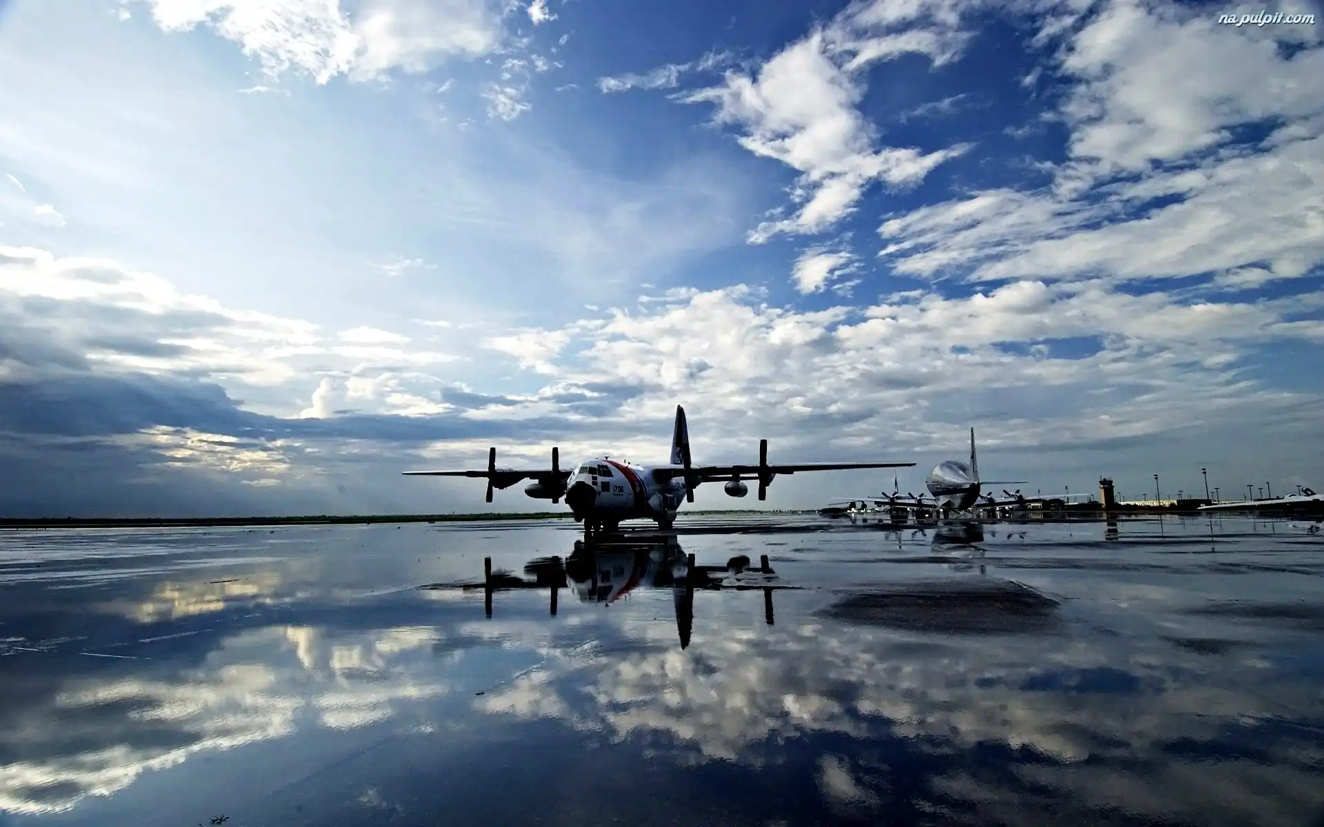 Płyta, Niebo, Odbicie, Lotniska, Mokra, Samoloty
