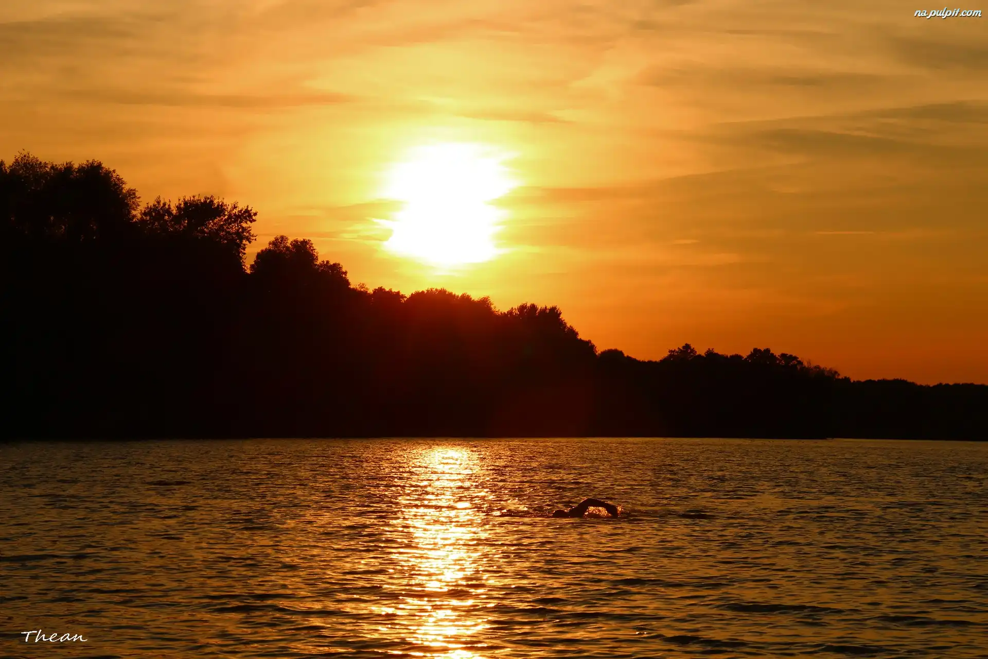 Pływak, Słońca, Zachód, Jezioro Na Pulpit