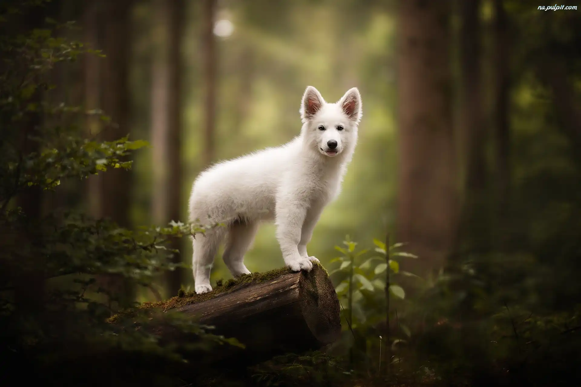 Pies, Pniak, Las, Szczeniak, Biały, Biały owczarek szwajcarski Na Pulpit