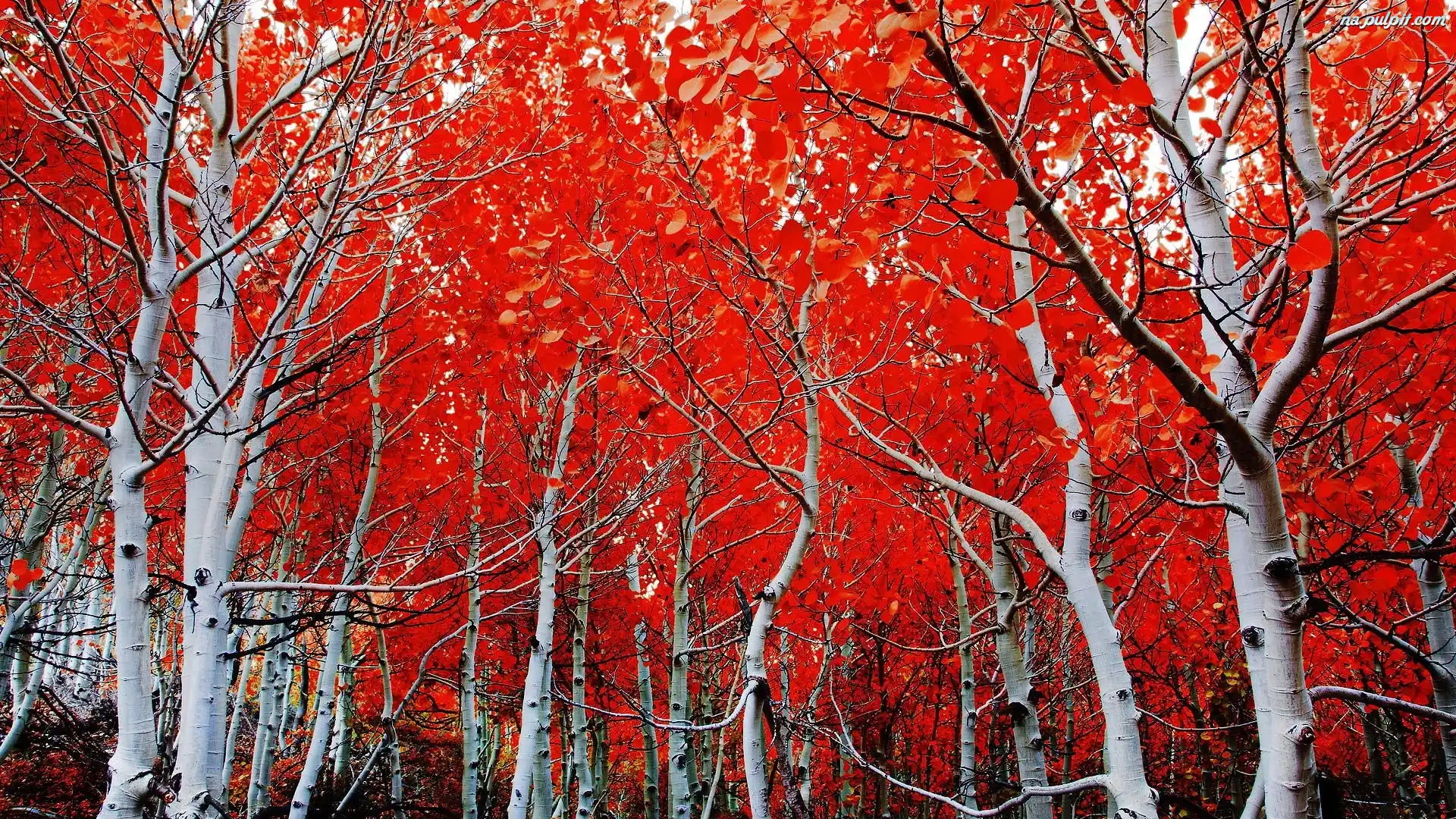 Pnie, Liście, Czerwone, Drzewa, Białe Na Pulpit