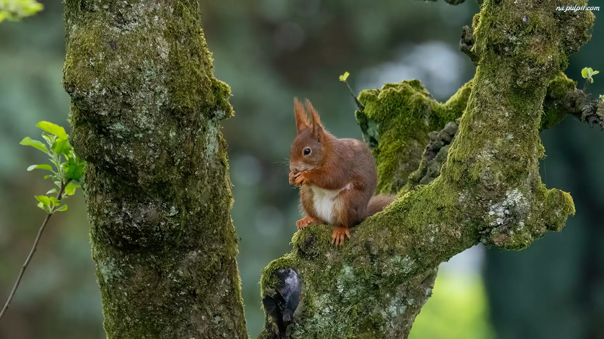 Wiewiórka, Drzewo, Omszone, Pnie