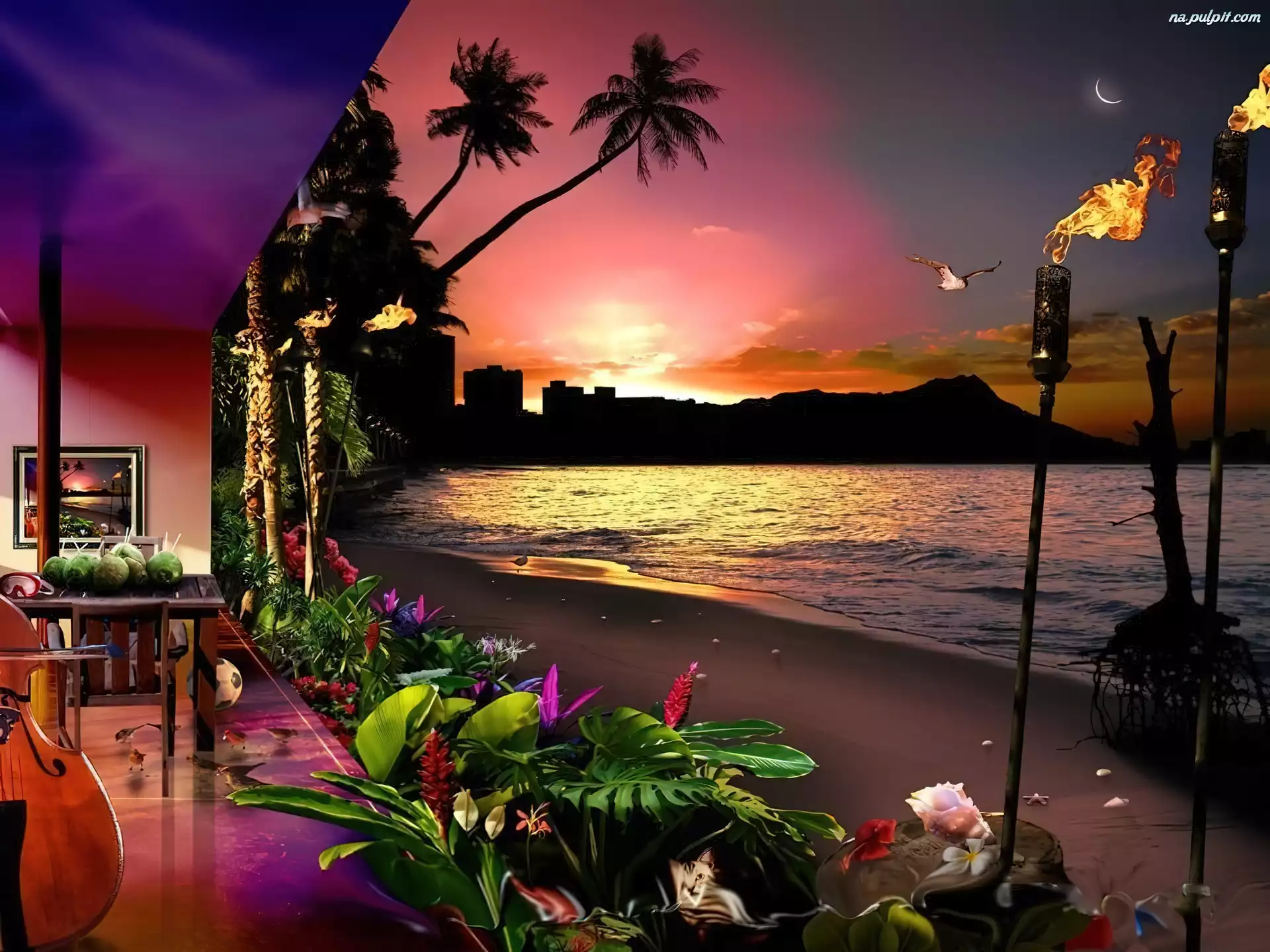 Pochodnie, Taras, Plaża, Kwiaty Na Pulpit
