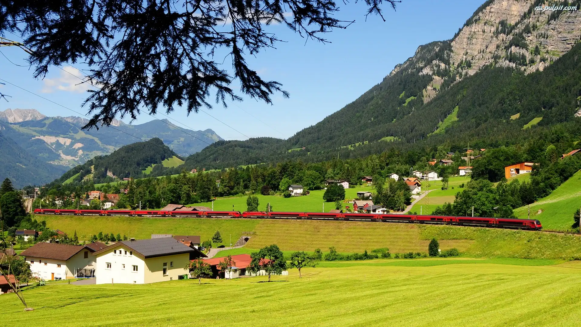 Pociąg, Drzewa, Lasy, Góry, Domy Na Pulpit