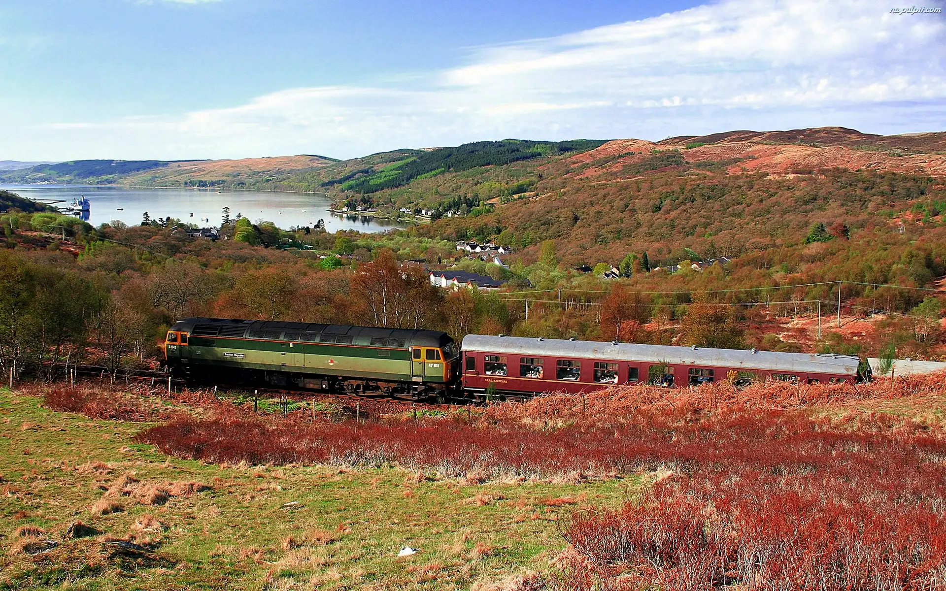 Pociąg, Wzgórza, Jezioro, Łąki Na Pulpit
