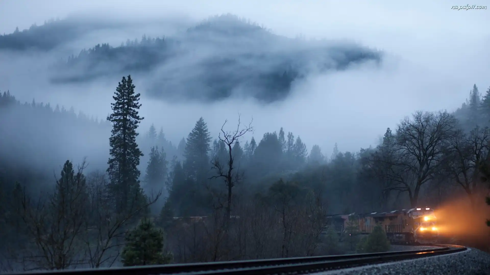 Pociąg, Lasy, Mgła, Góry Na Pulpit