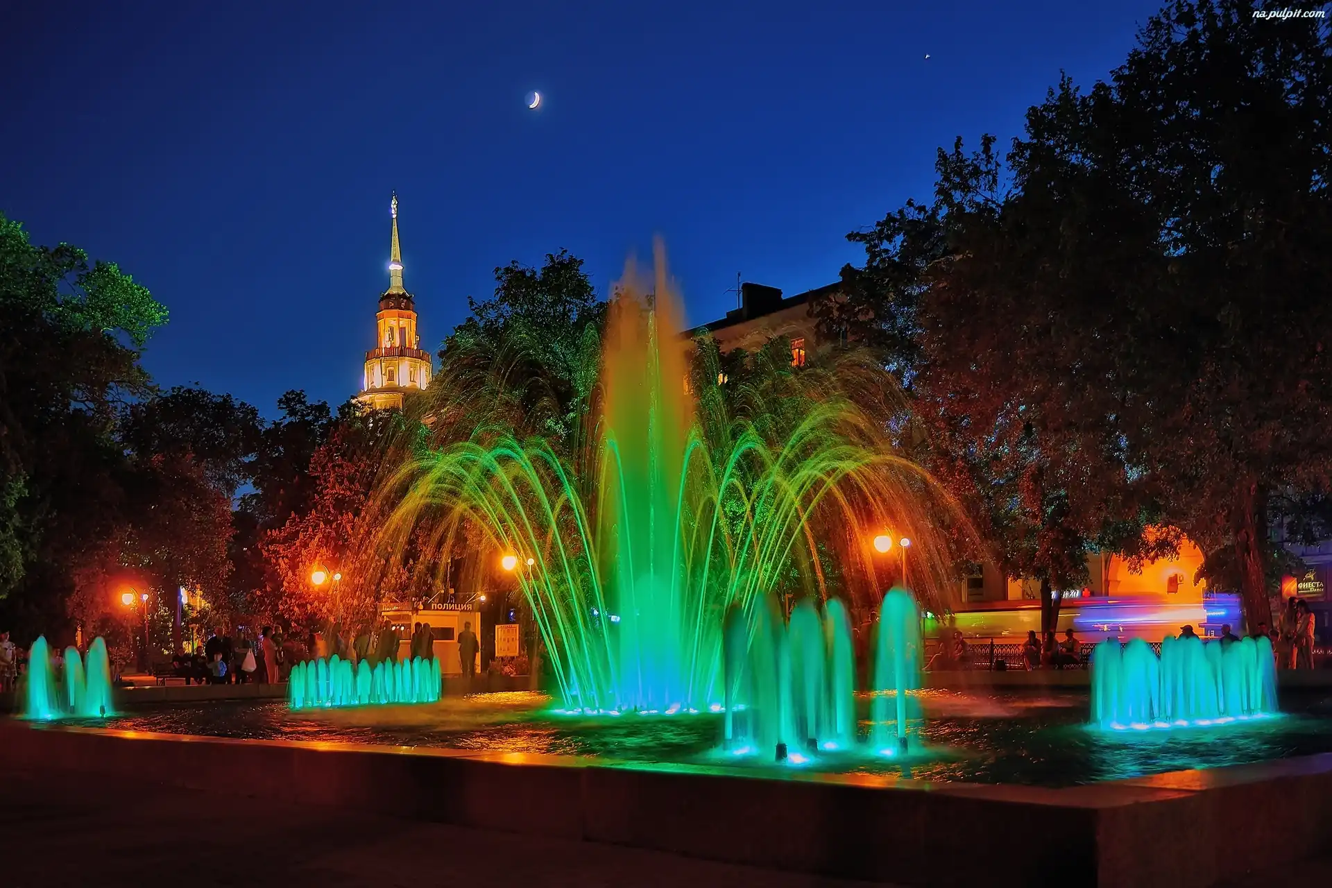 Noc, Podświetlane, Fontanny