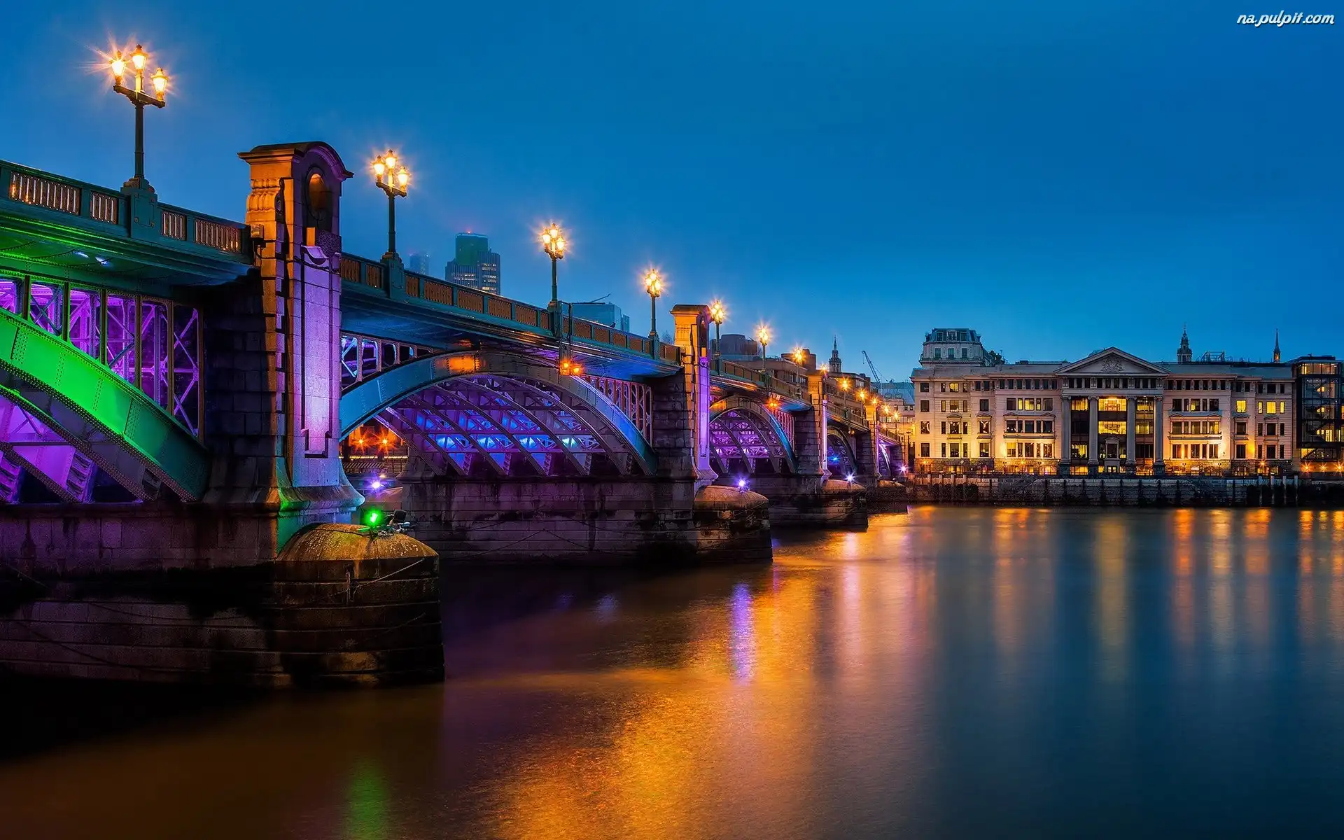 Podświetlany, Gmach, Budynku, Rzeka, Most, Latarnie Na Pulpit