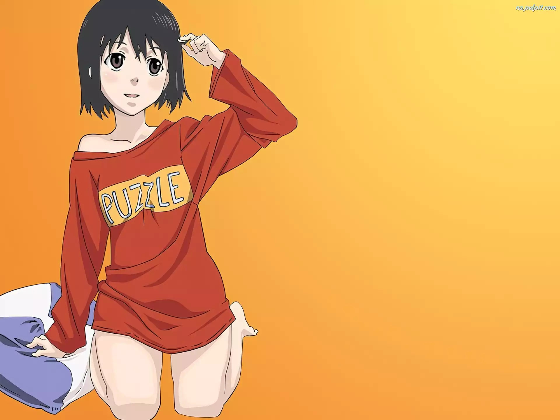 poduszka, dziewczyna, Welcome To Nhk, klęczy