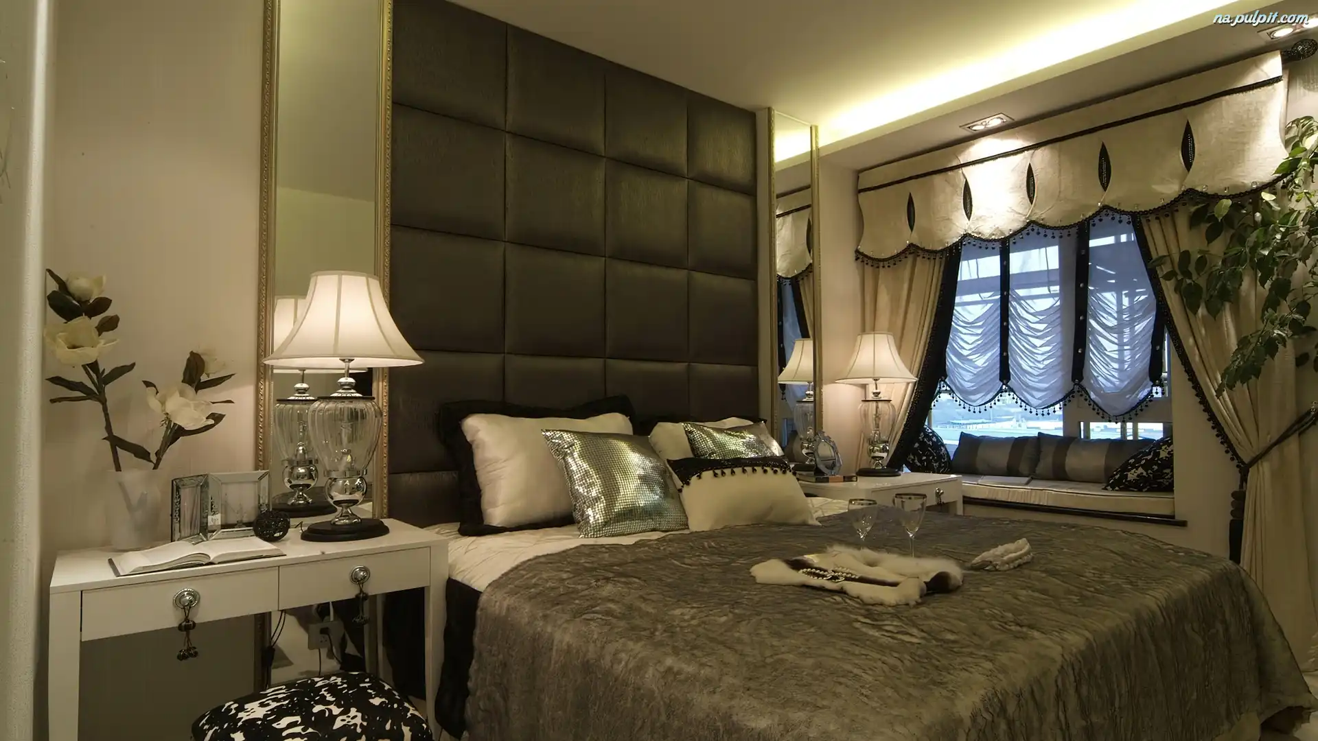 Poduszki, Zasłony, Sypialnia, Luksusowa, Dekoracyjne