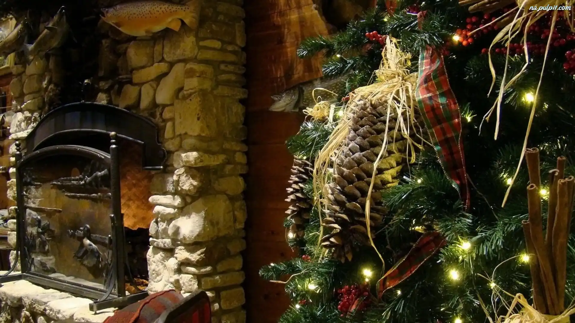 Kominek, Pokój, Choinka Na Pulpit