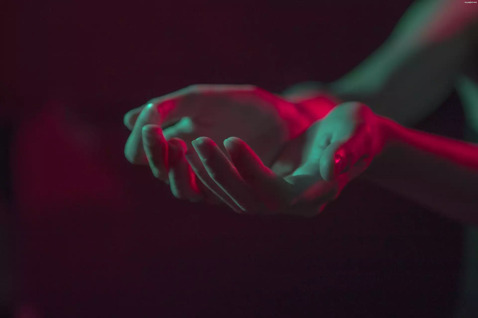 Pokój, Światła, Kolorowe, Ręce, Ciemny