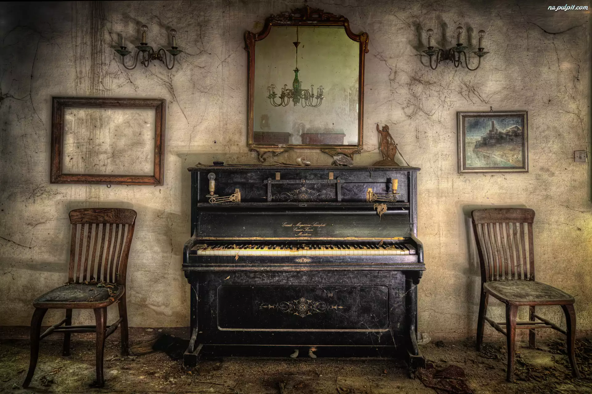 Pokój, Krzesła, Lustro, Stare, Zaniedbany, Pianino