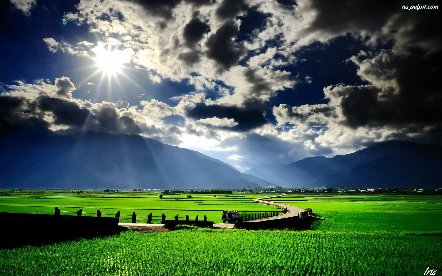 Pola, Słońca, Promienie, Chmury, Droga Na Pulpit