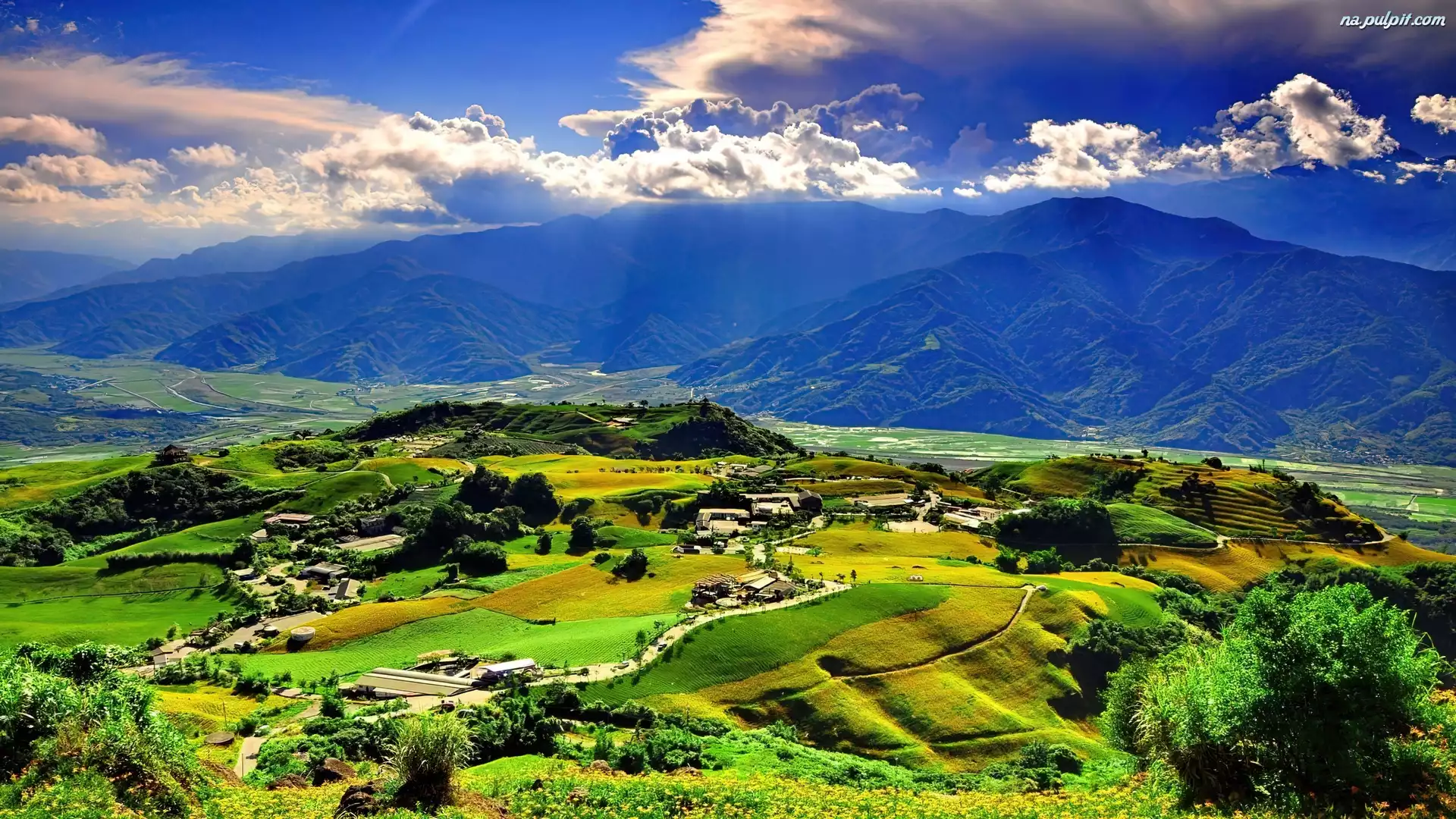 Pola, Osiedle, Panorama, Góry, Natura, Chmury