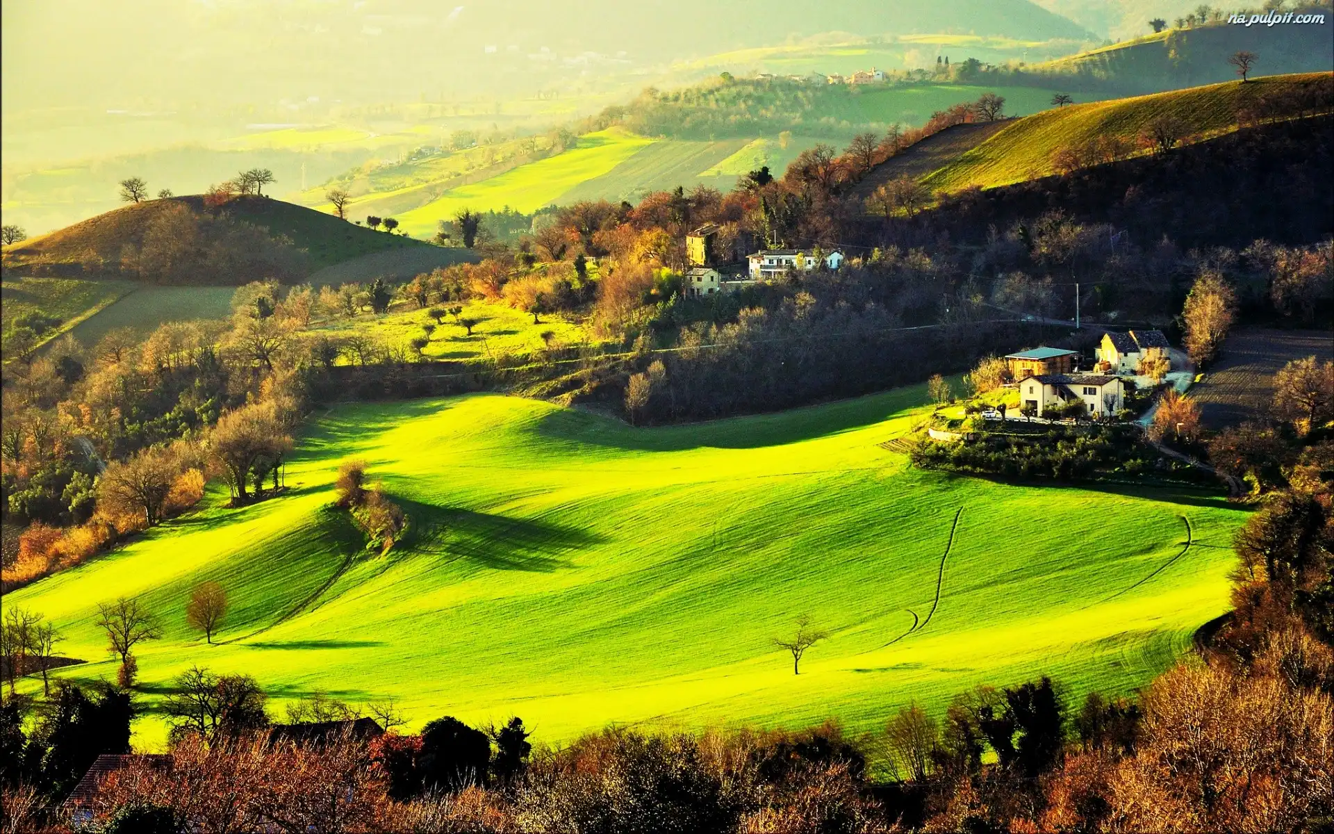 Włochy, Pola, Wieś, Farmy, Łąki, Góry, Drzewa Na Pulpit