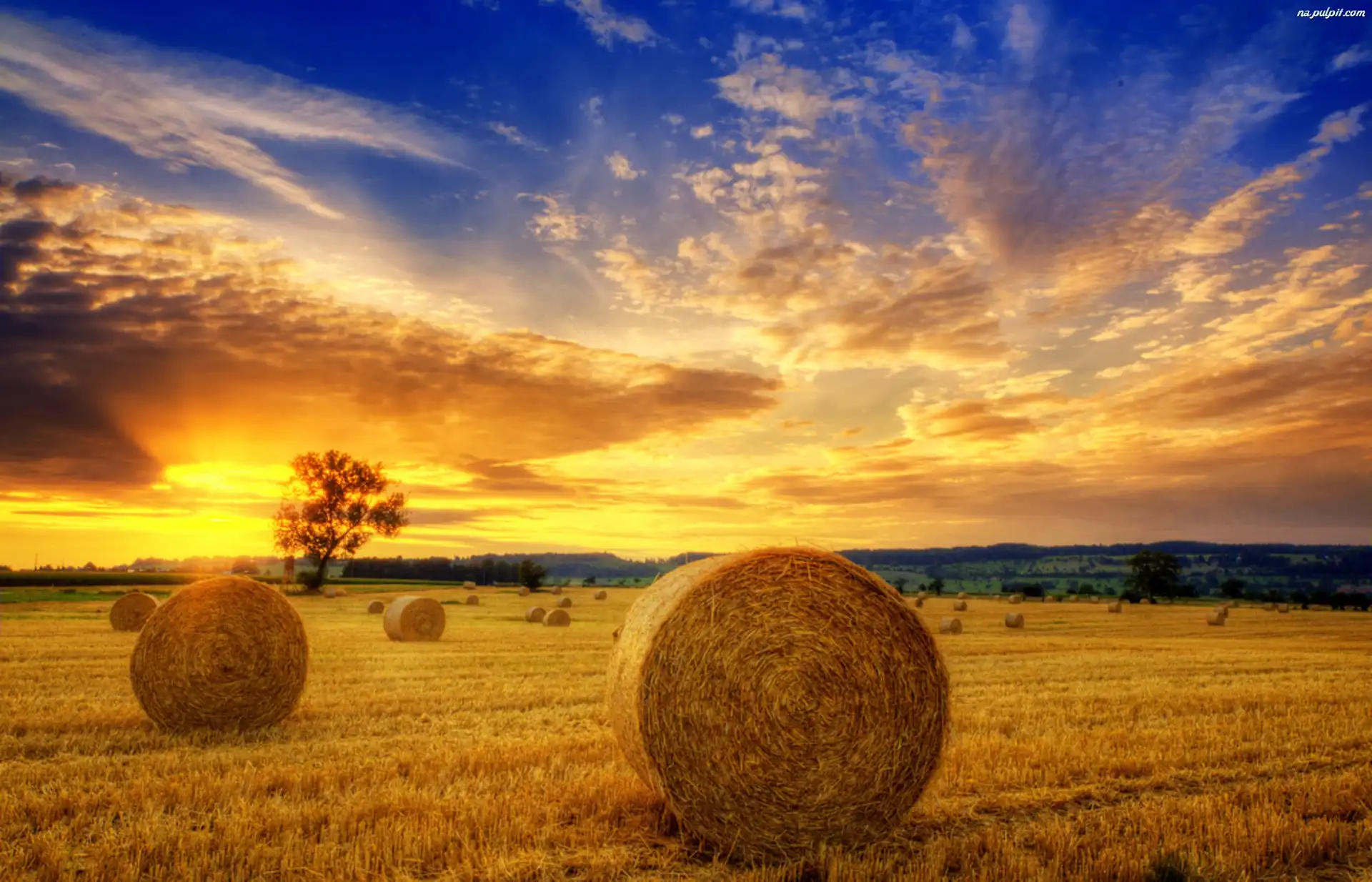 Pola, Bele, Słońca, Zachód, Słomy Na Pulpit