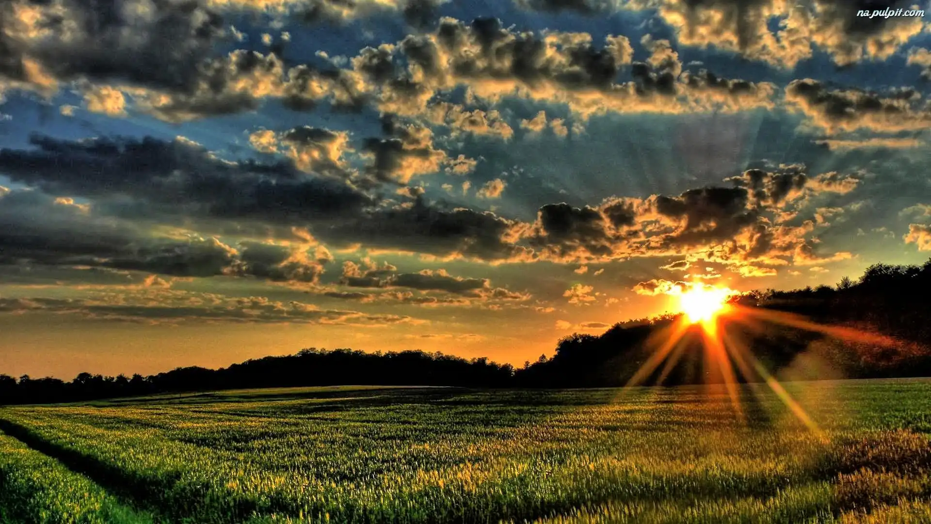Pola, Słońca, Zachód, Chmury Na Pulpit