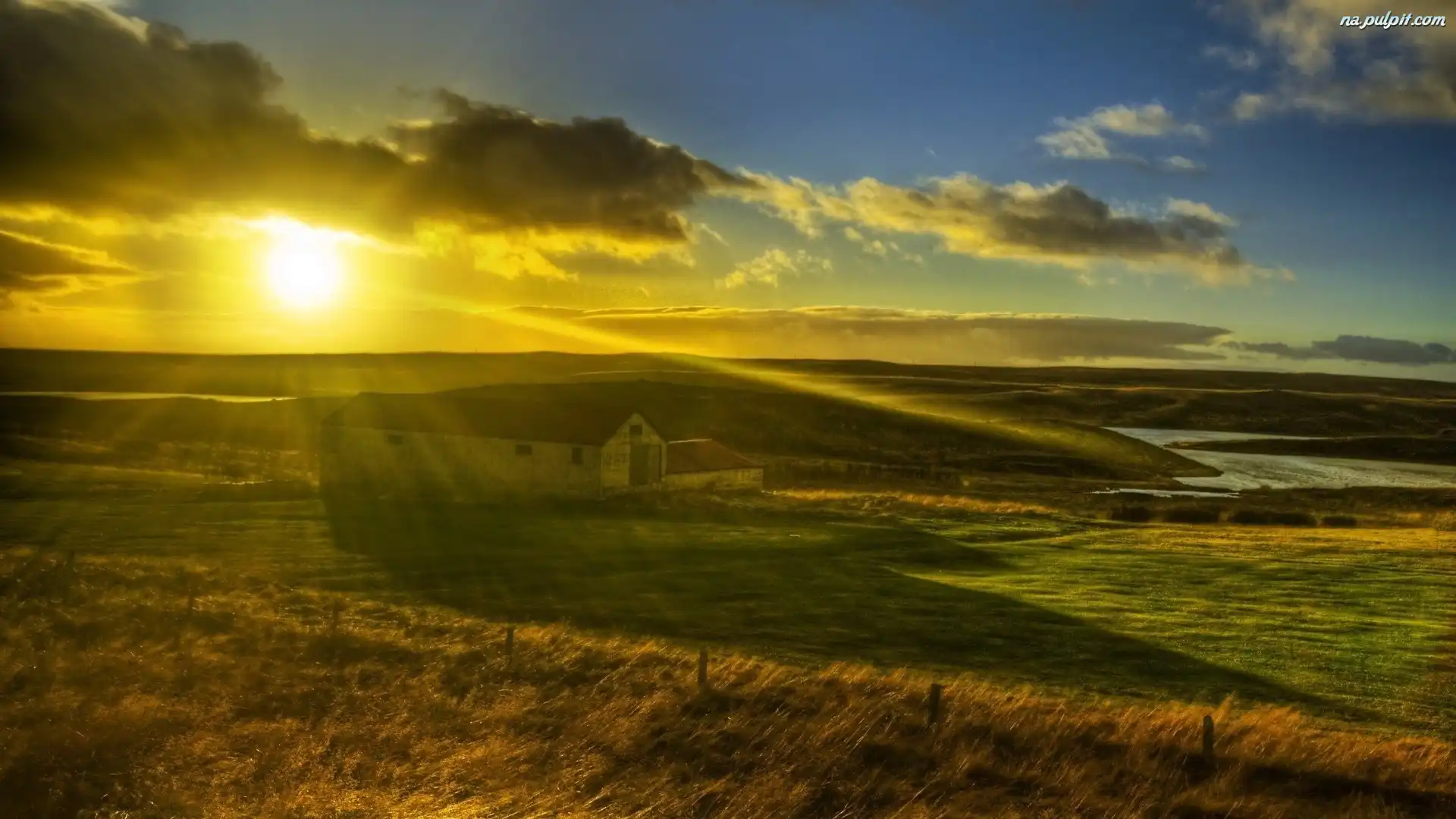 Pola, Ferma, Słońca, Zachód, Rzeka Na Pulpit