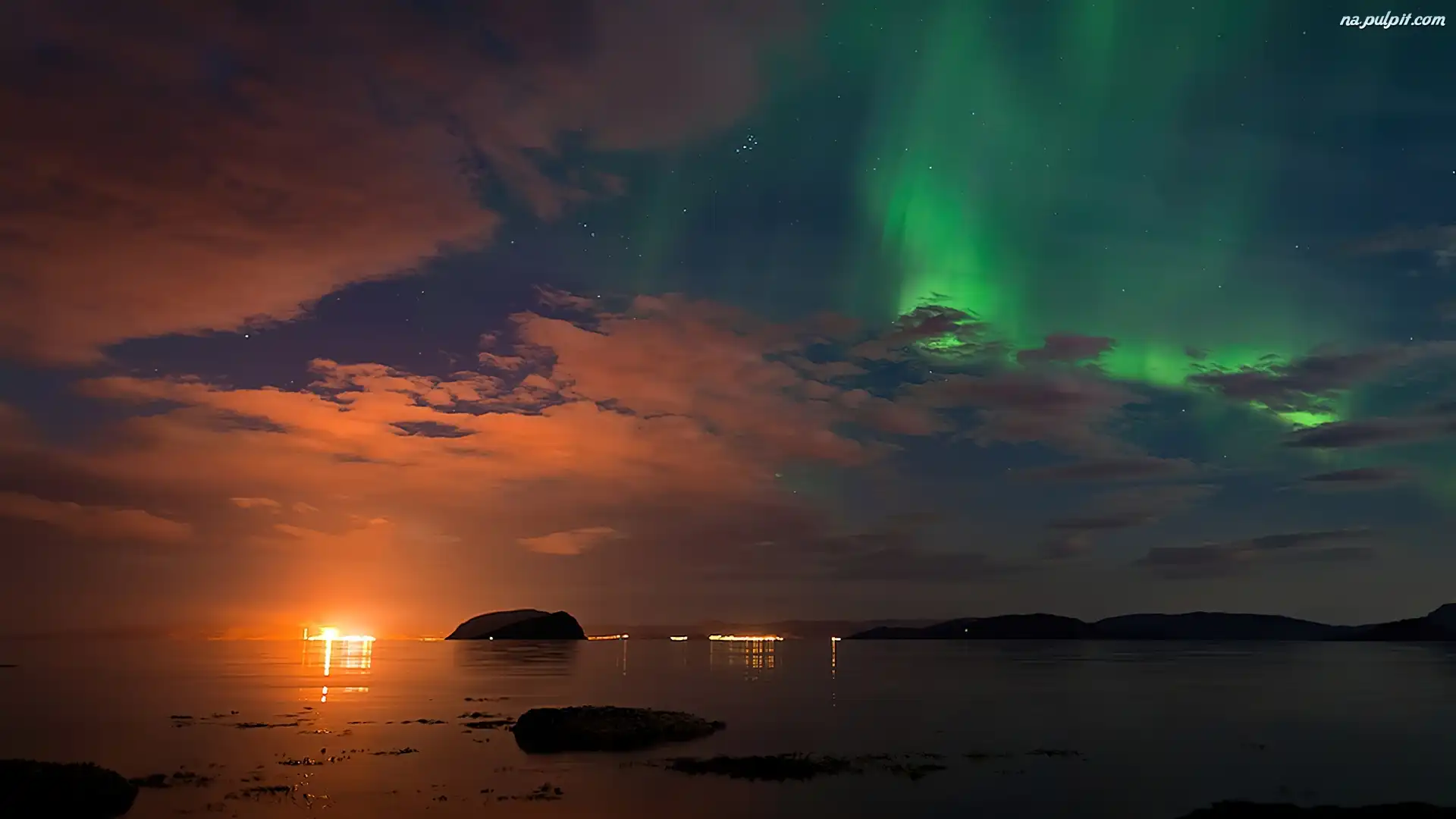 Polarna, Niebo, Chmury, Morze, Zorza Na Pulpit