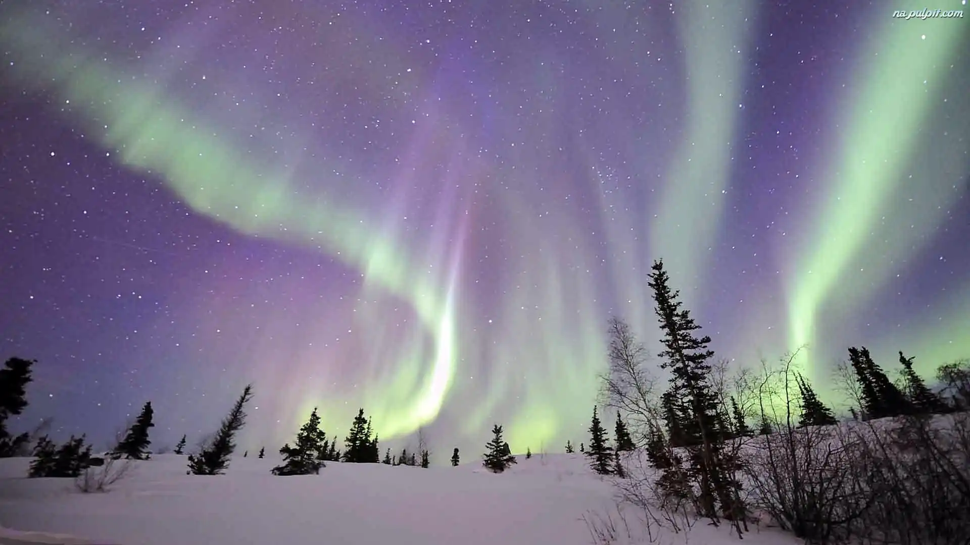 Polarna, Gwiazdy, Drzewa, Zima, Zorza, Niebo Na Pulpit