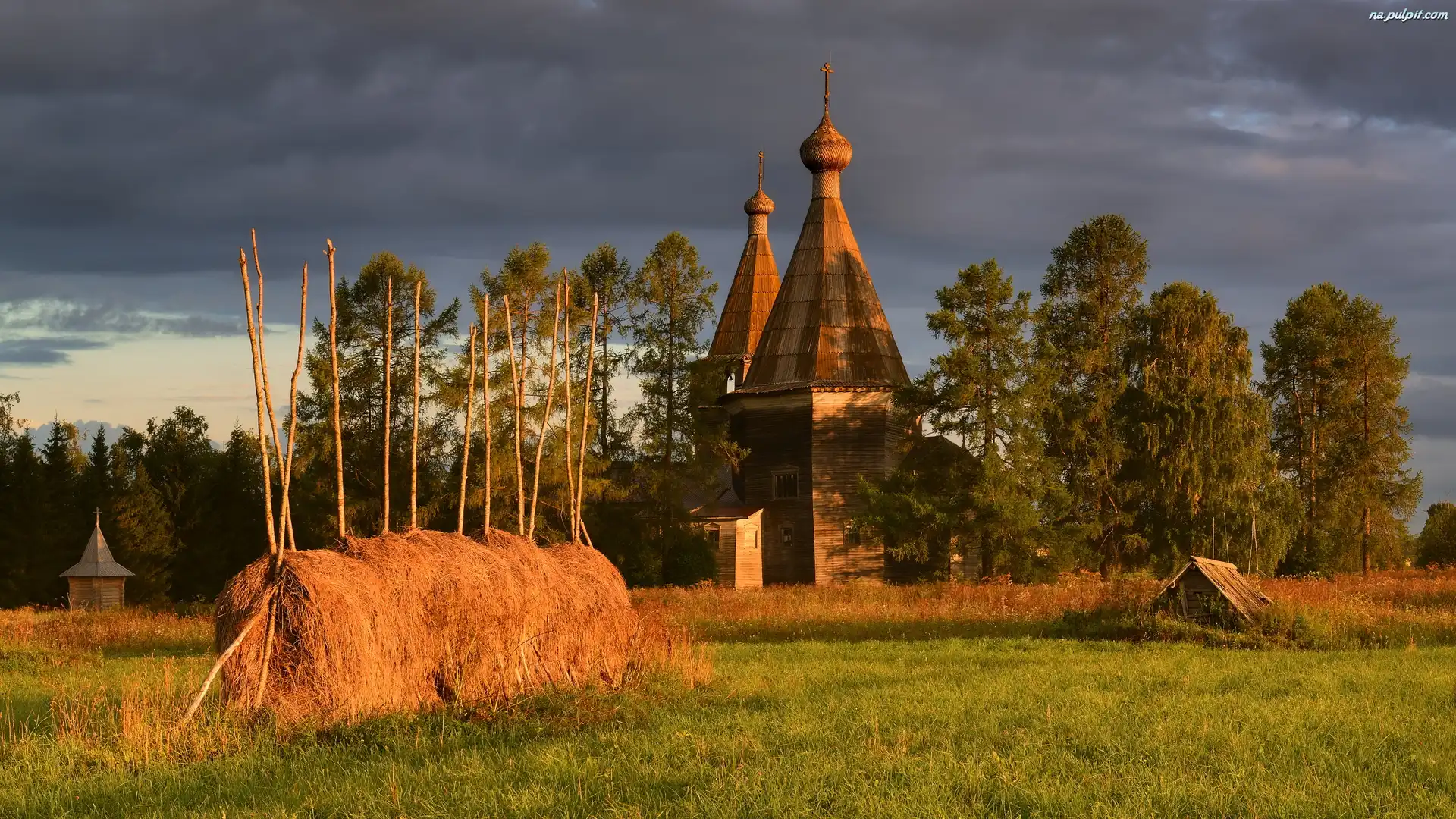 Pole, Stóg, Drzewa, Kościół, Siano Na Pulpit