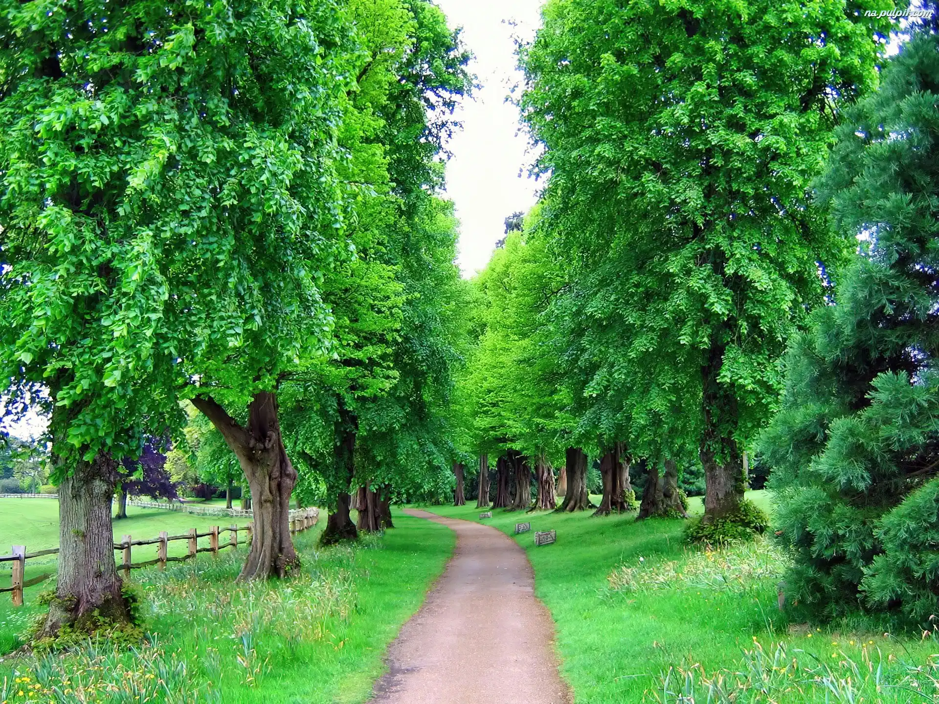 Pole, Drzewa, Zielone, Droga, Ogrodzenie Na Pulpit