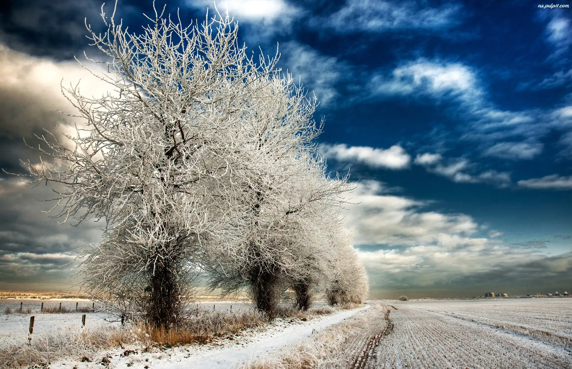 Pole, Åšnieg, Drzewa, Zima Na Pulpit