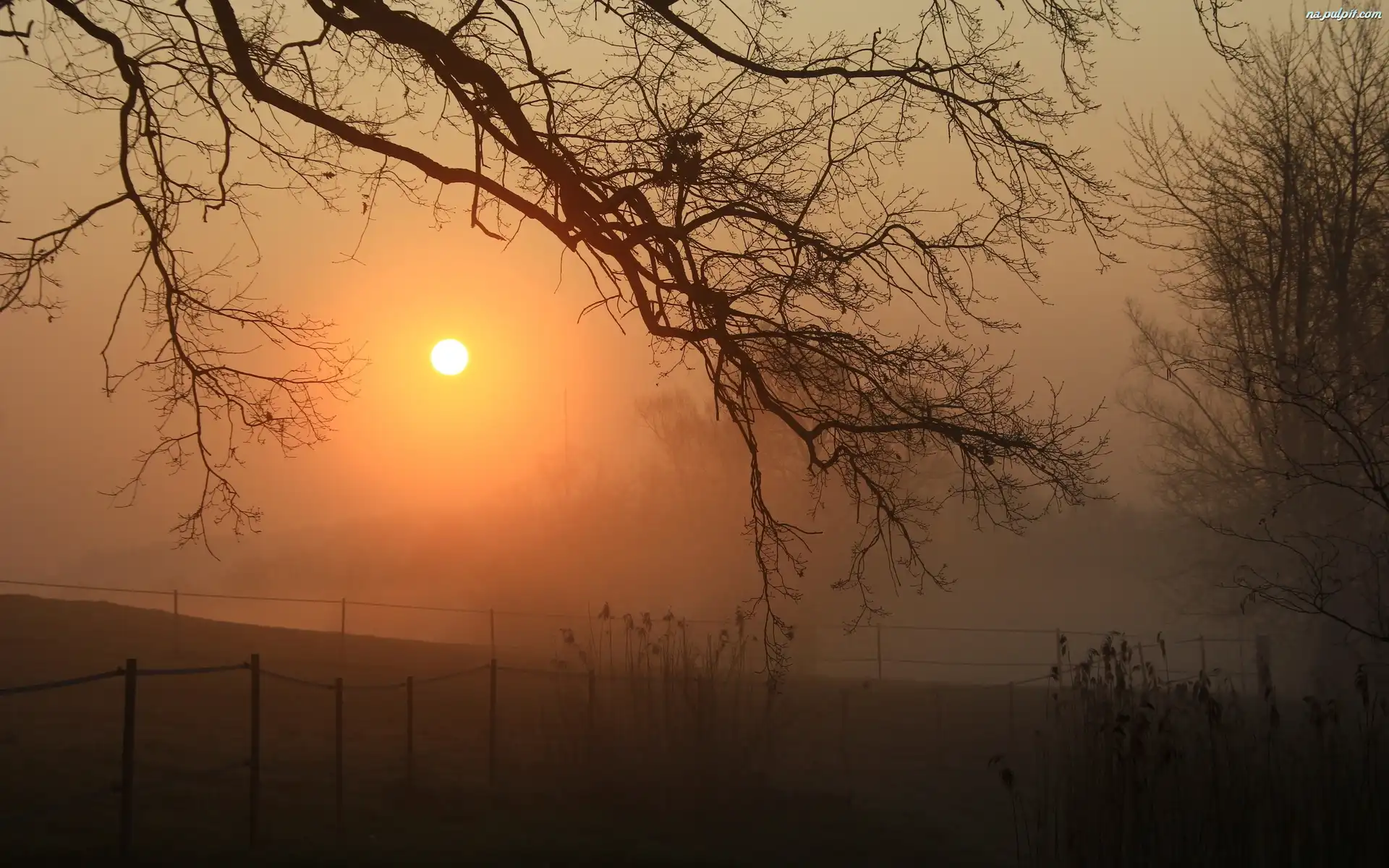 Światło, Mgła, Drzewa, Pole, Przebijające Na Pulpit