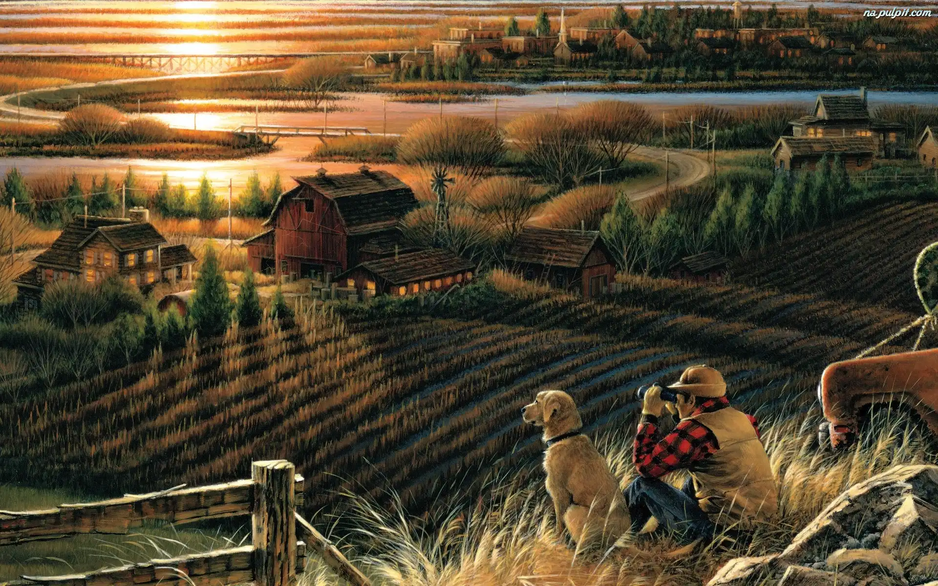 Pole, Mężczyzna, Obraz, Pies Na Pulpit
