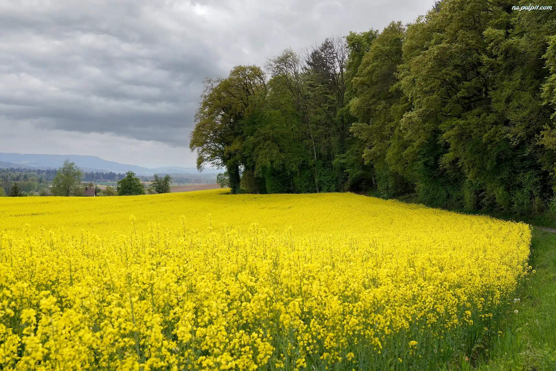 Las, Pole, Rzepak, Chmury, Drzewa Na Pulpit
