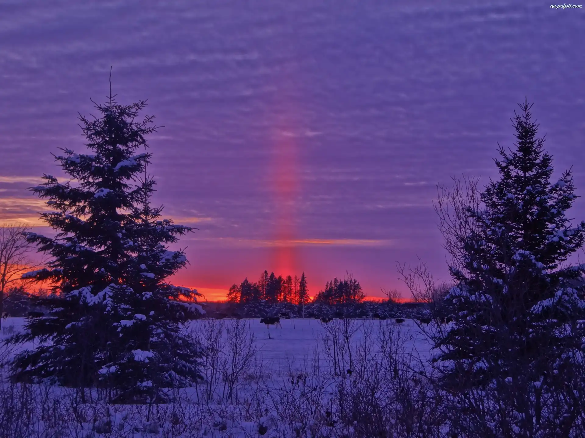 Śnieg, Słońca, Zachód, Pole, Świerki Na Pulpit