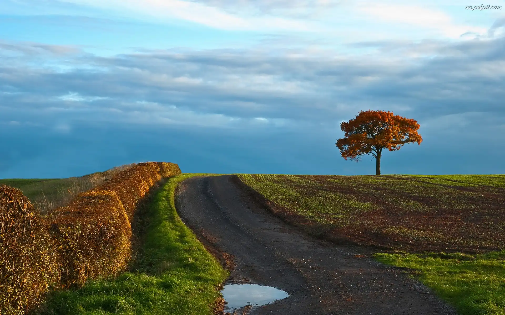 Żywopłot, Drzewo, Droga, Polna, Pole Na Pulpit