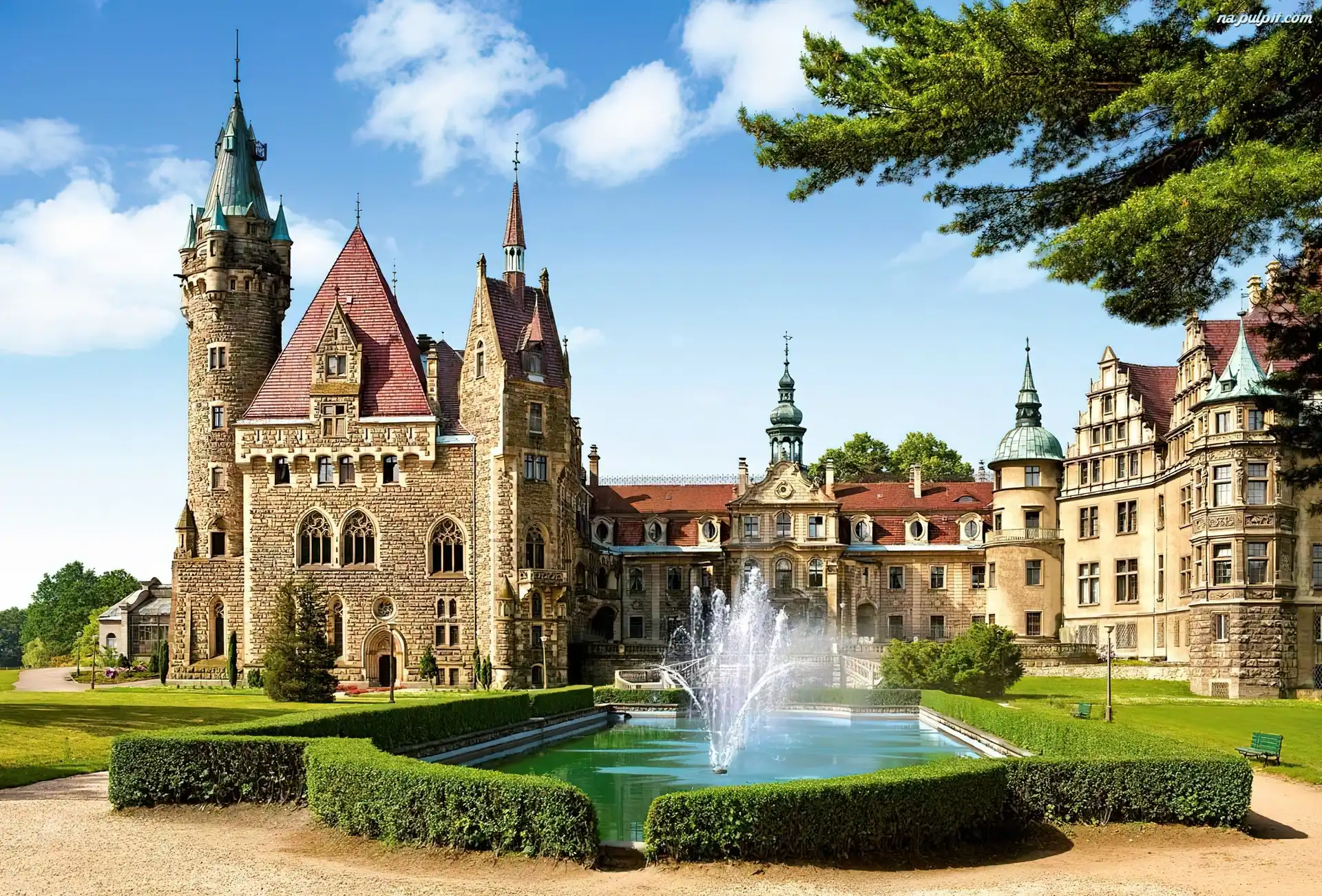Polska, Zamek, Fontanna, Moszna Na Pulpit