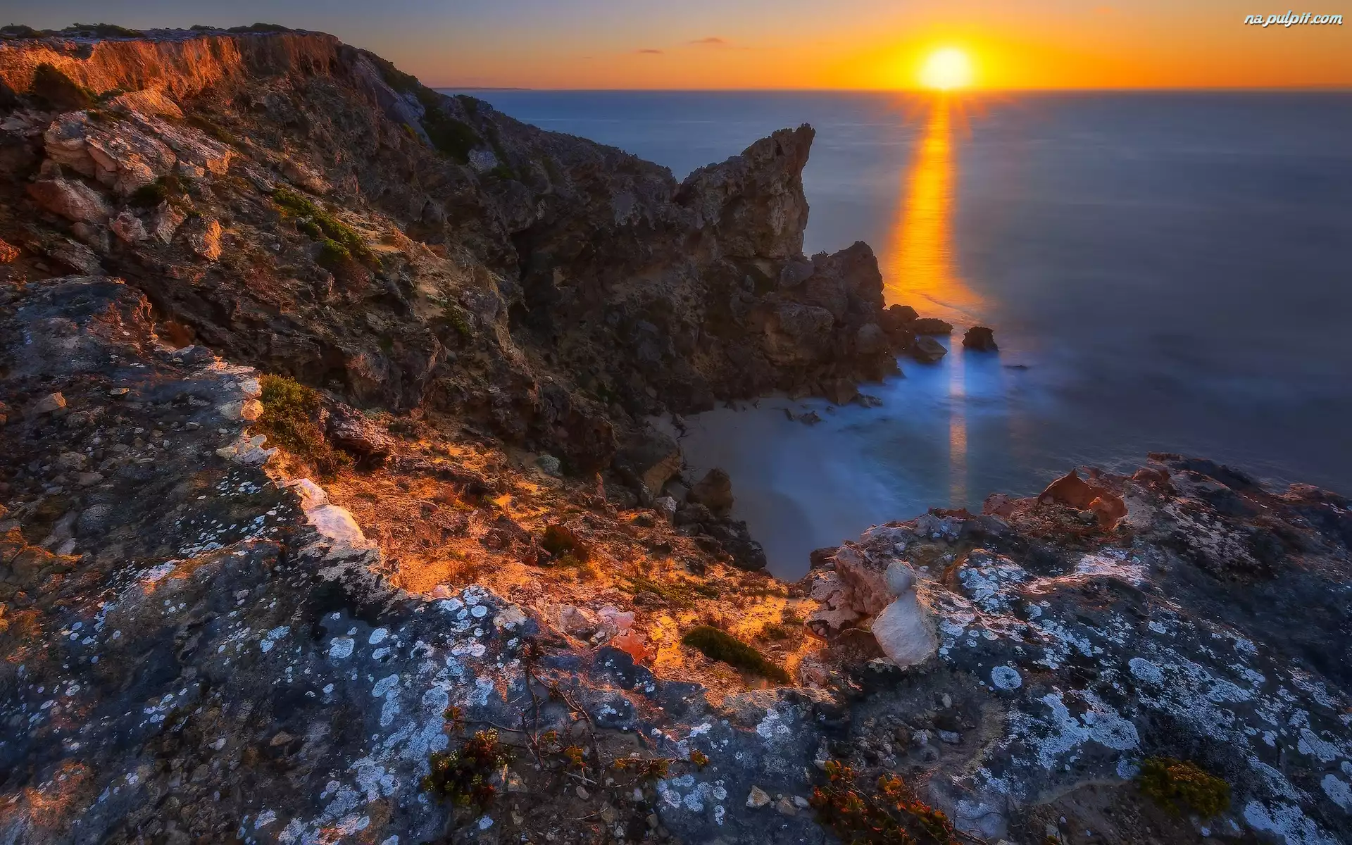 Zachód słońca, Zatoka, Australia, Morze, Skały, Półwysep Yorke Peninsula, Marion Bay Na Pulpit |