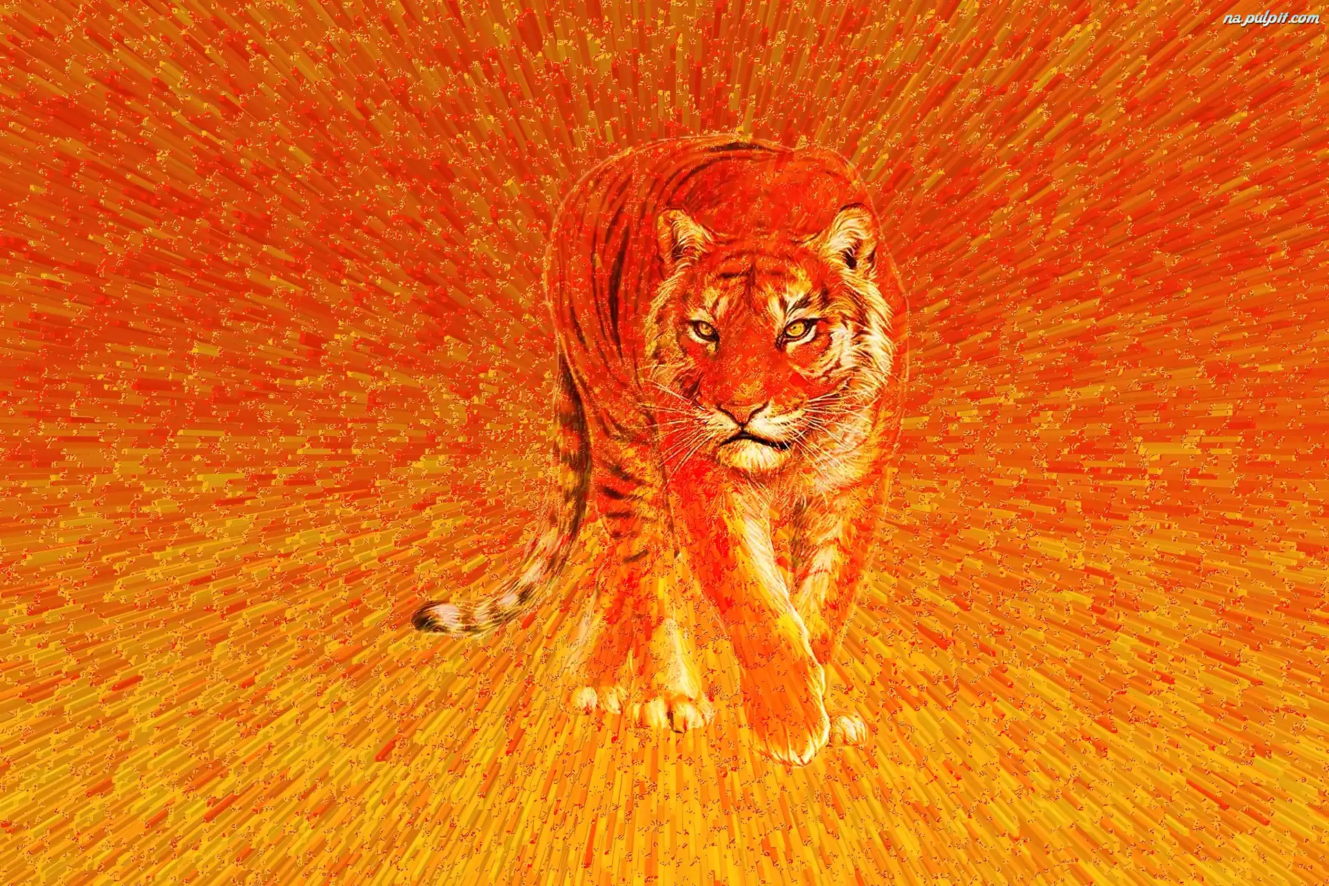 Pomarańcz, Kot, 3d, Tygrys, Paski