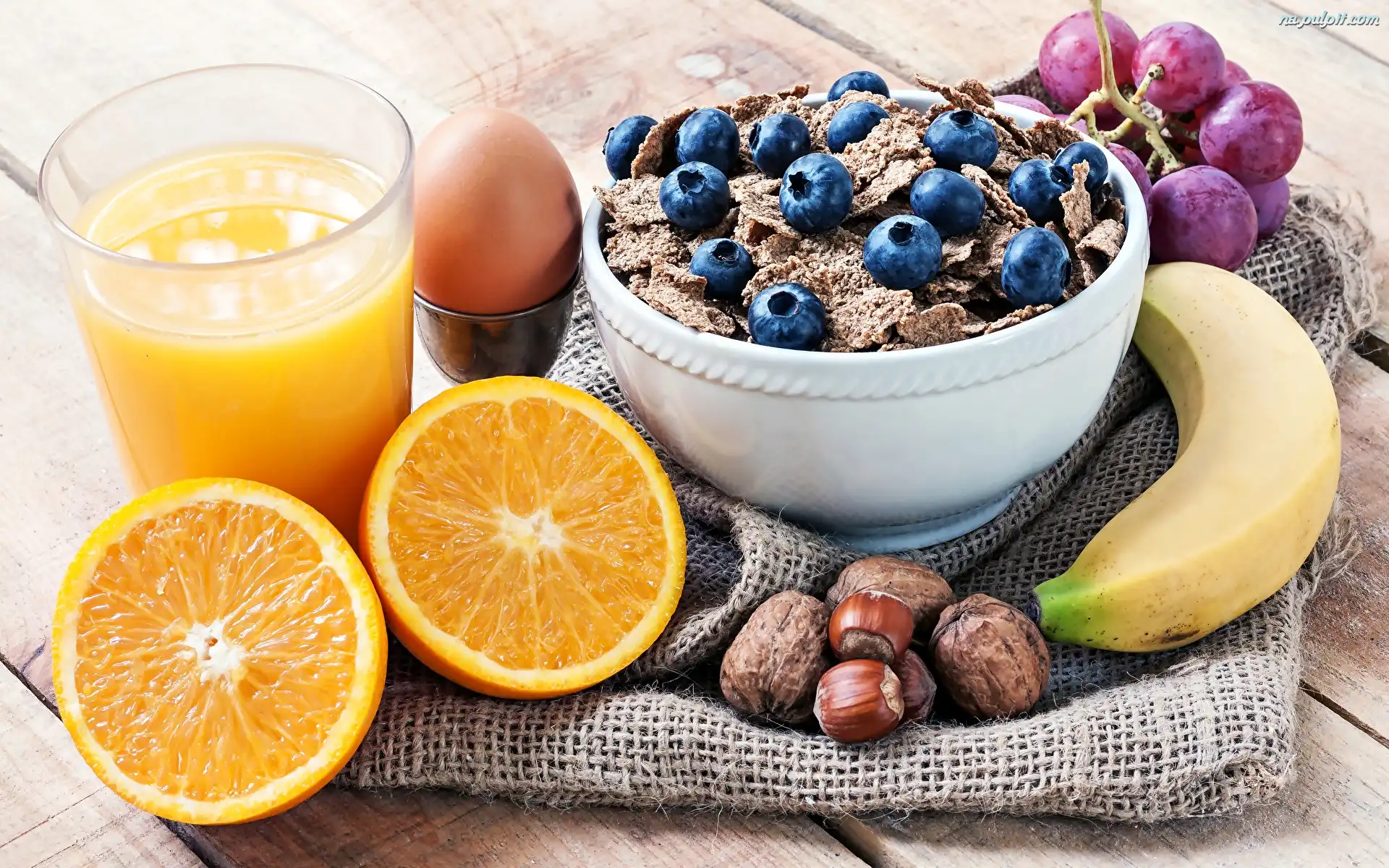 Orzechy, Musli, Borówki, Sok, Jajko, Śniadanie, Banan, Płatki, Pomarańcza Na Pulpit