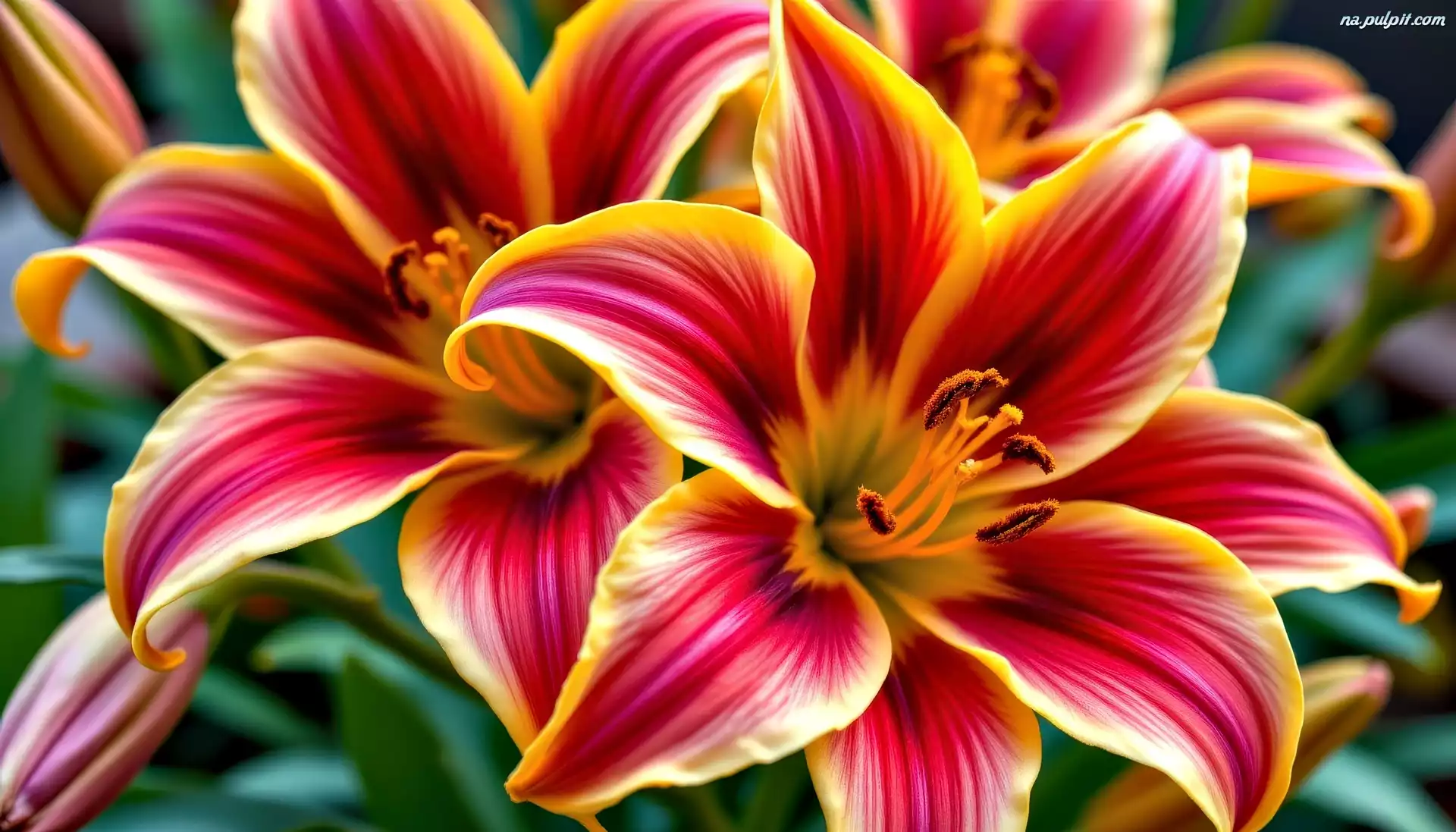 Lilia, Pomarańczowe, Kwiaty, Grafika AI Na Pulpit